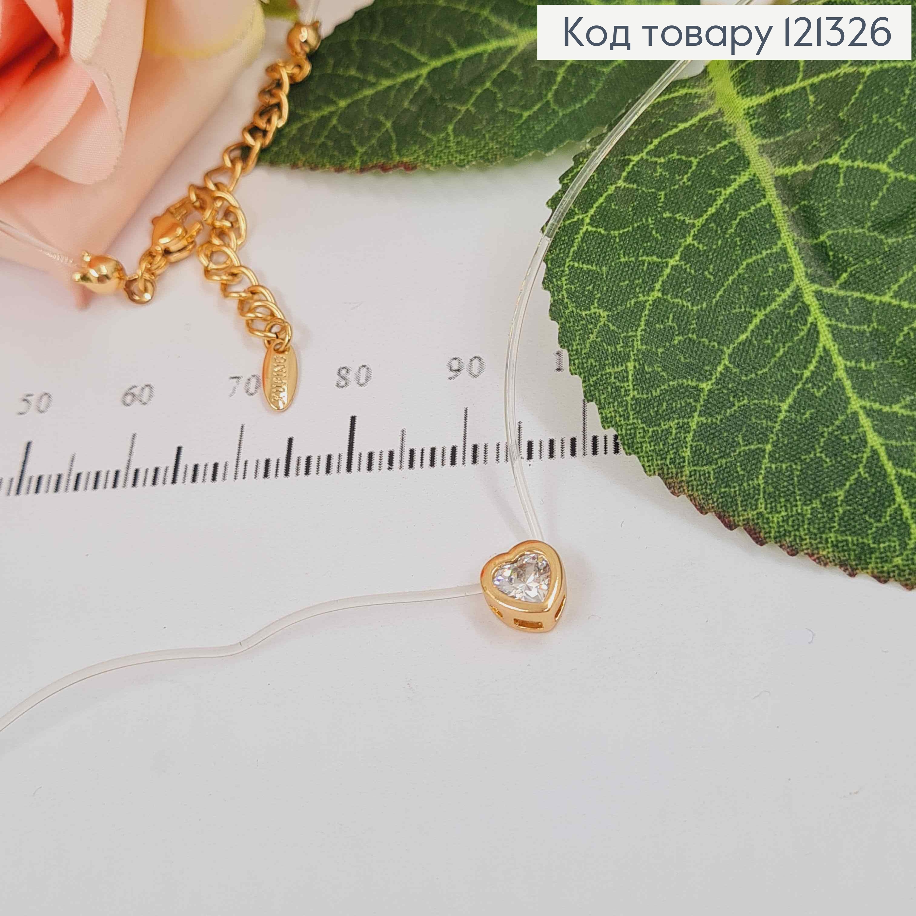 Жилка прозрачная, с камешком Сердечком 5мм в оправе, дл. 40+5см, Xuping 18K