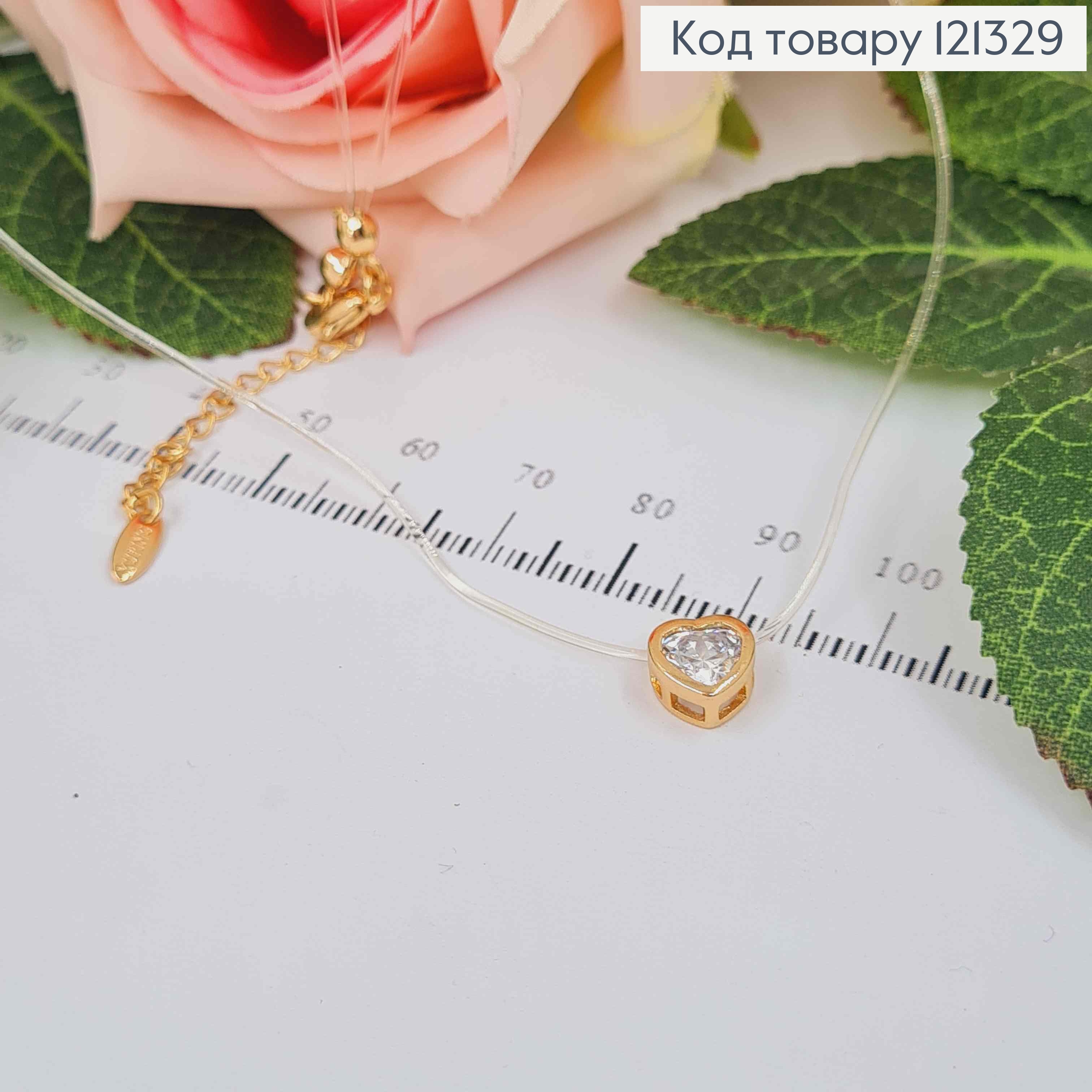 Жилка прозрачная, с камешком Сердечком 6мм в оправе, дл. 40+5см, Xuping 18K