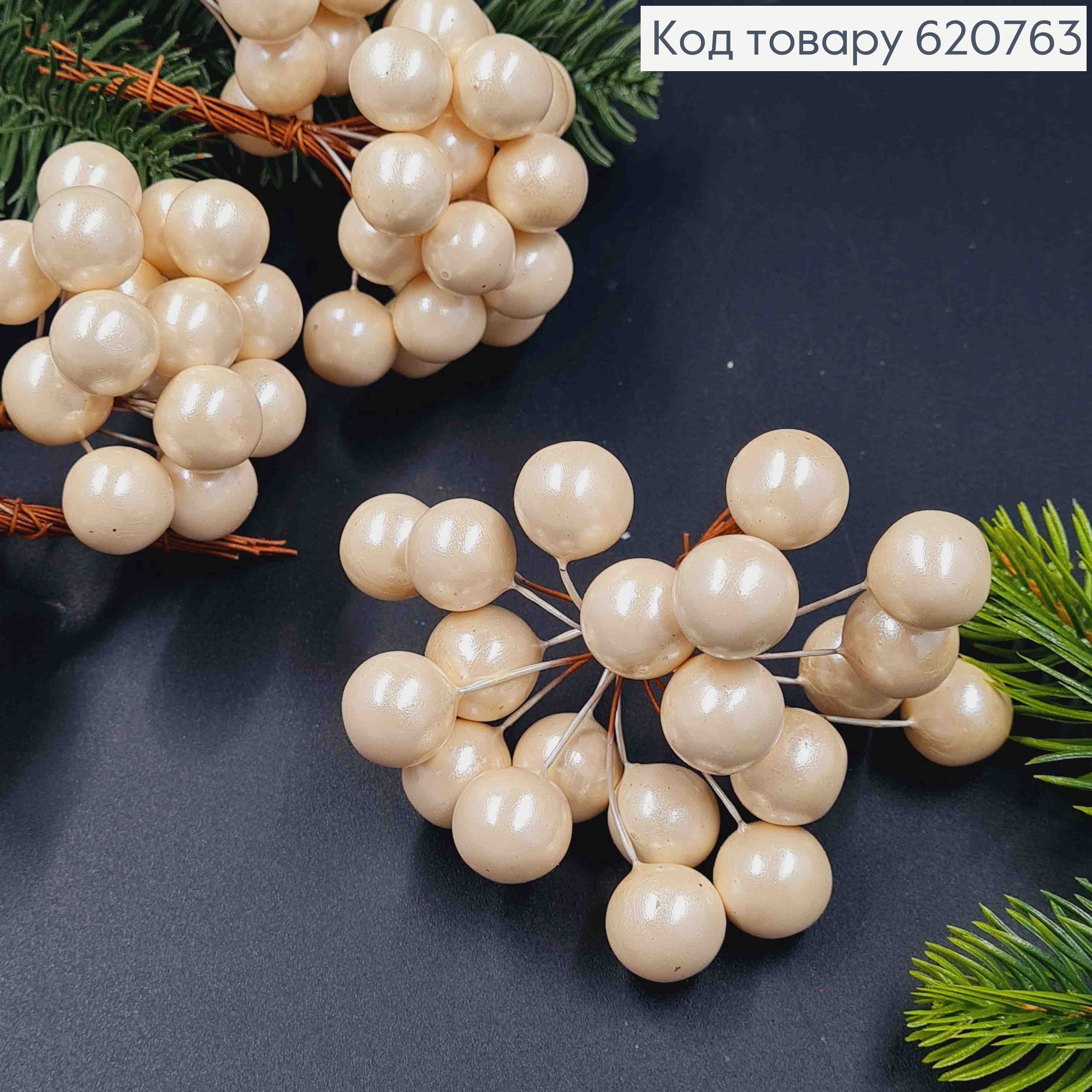 Ягідки КАЛИНИ, МОЛОЧНОГО кольору(20шт) на металевому дротику , 1,5см+6,5см 620763 фото