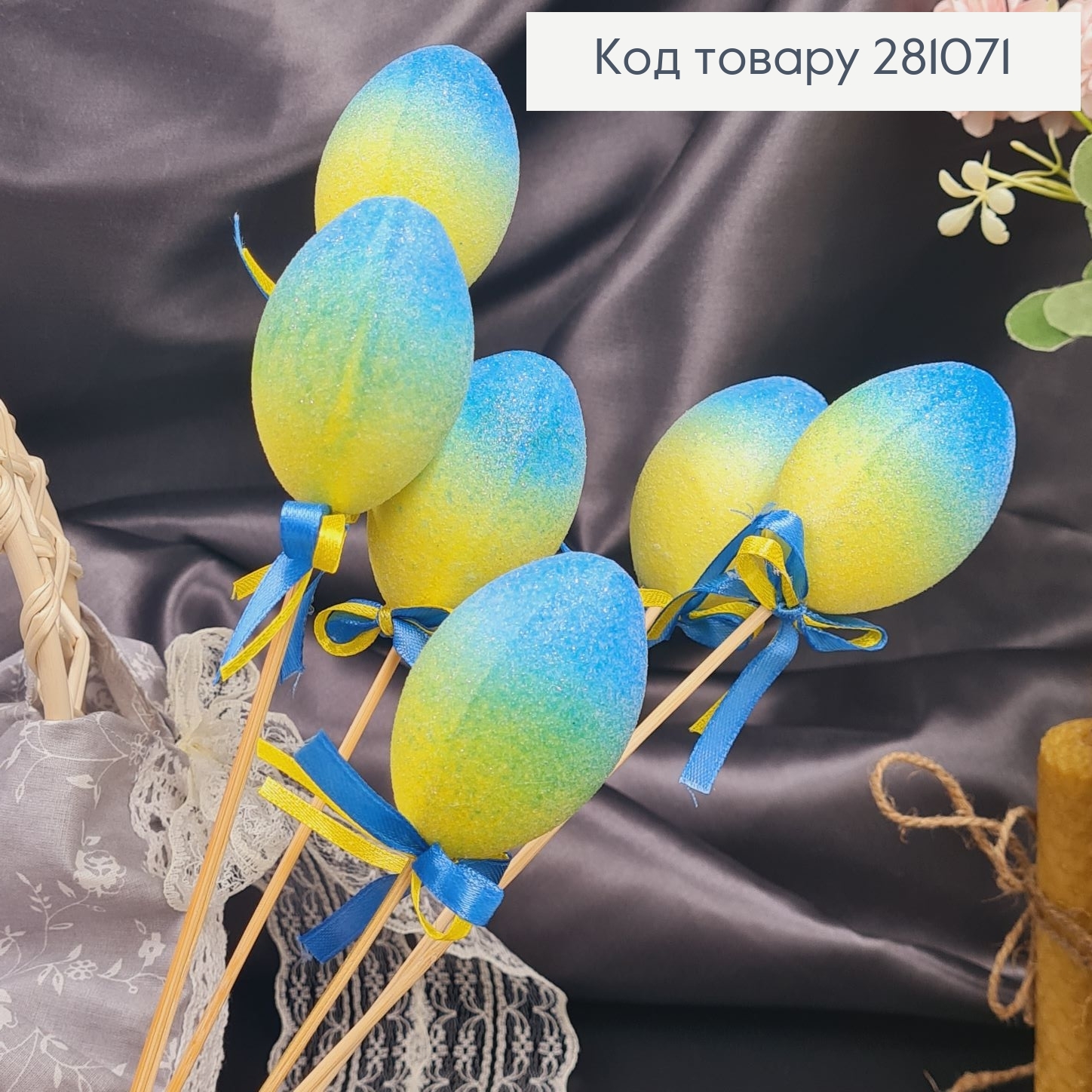 Яйця середні Блиск омбре Жовто-Блакитне на шпажці, 6*3,5см, 6шт/уп