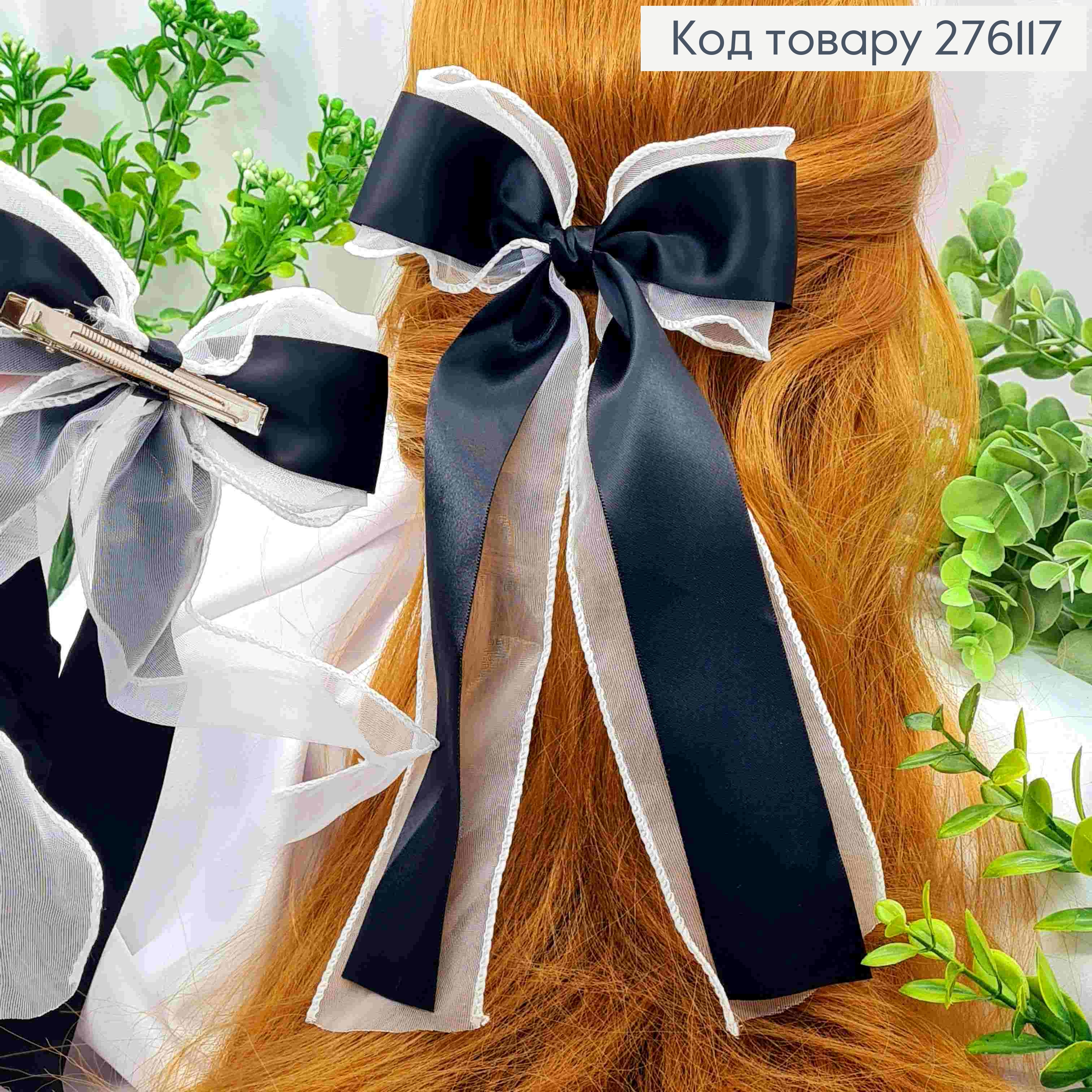 Бант ЧОРНО-БІЛОГО кольору, на заколці 7,5см, тканина органза+атлас, розмір 14*24см