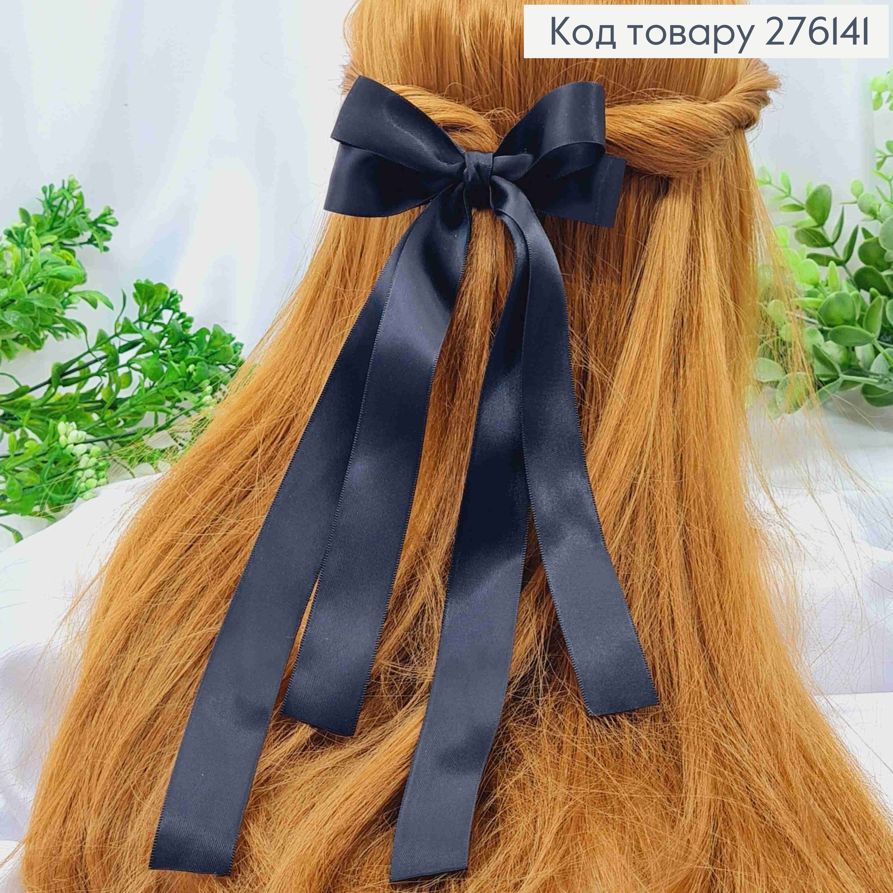 Бант ЧОРНОГО кольору, на заколці 5,5см, тканина атлас, розмір 11*28см, ручна робота, Україна