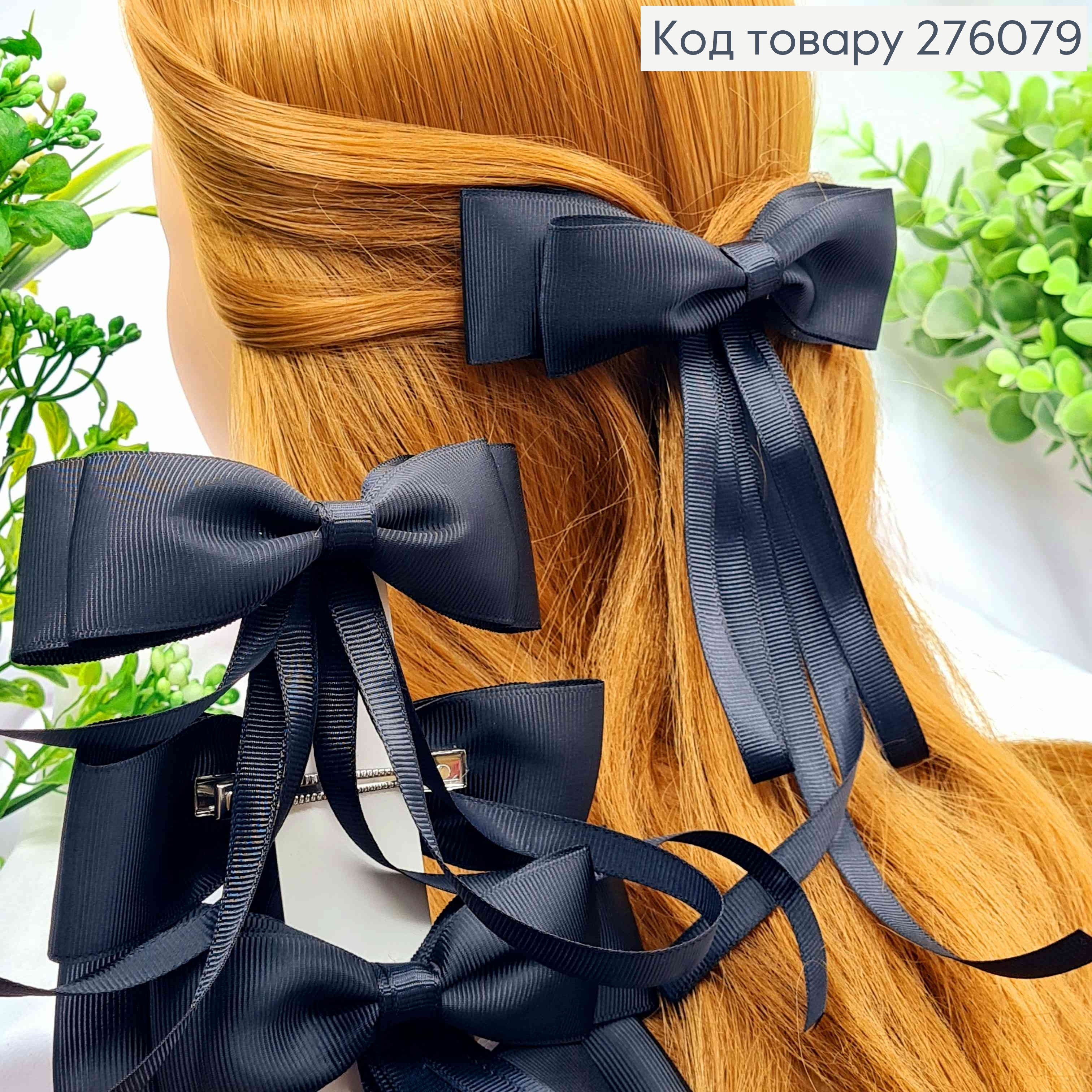 Бант ЧОРНОГО кольору з Хвостом, на заколці 5,5см, тканина репс, розмір 12,5*23см, ручна робота