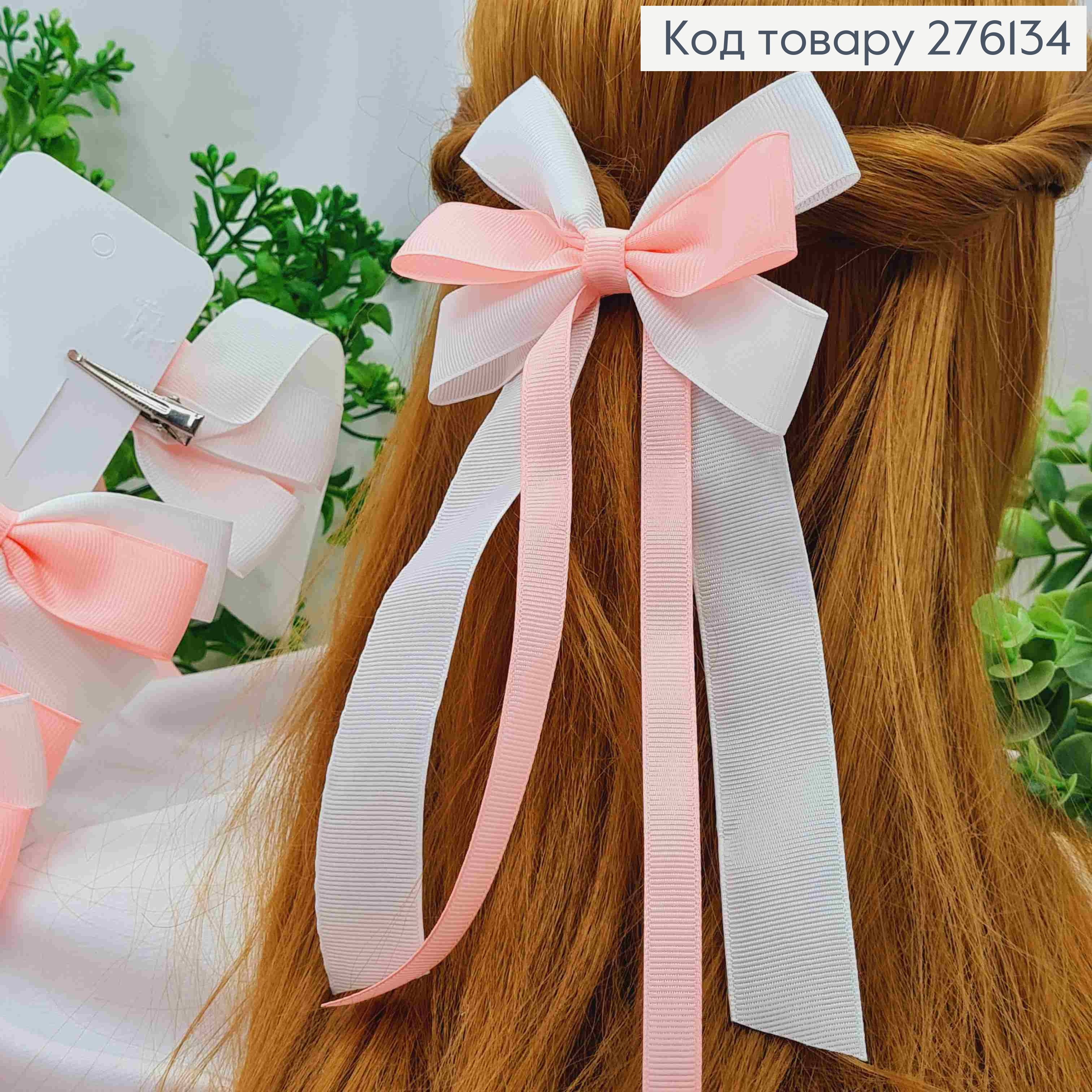 Бант ПЕРСИКОВО-БІЛОГО кольору, на заколці 4см, тканина репс, розмір 12*18,5см, ручна робота, Україна