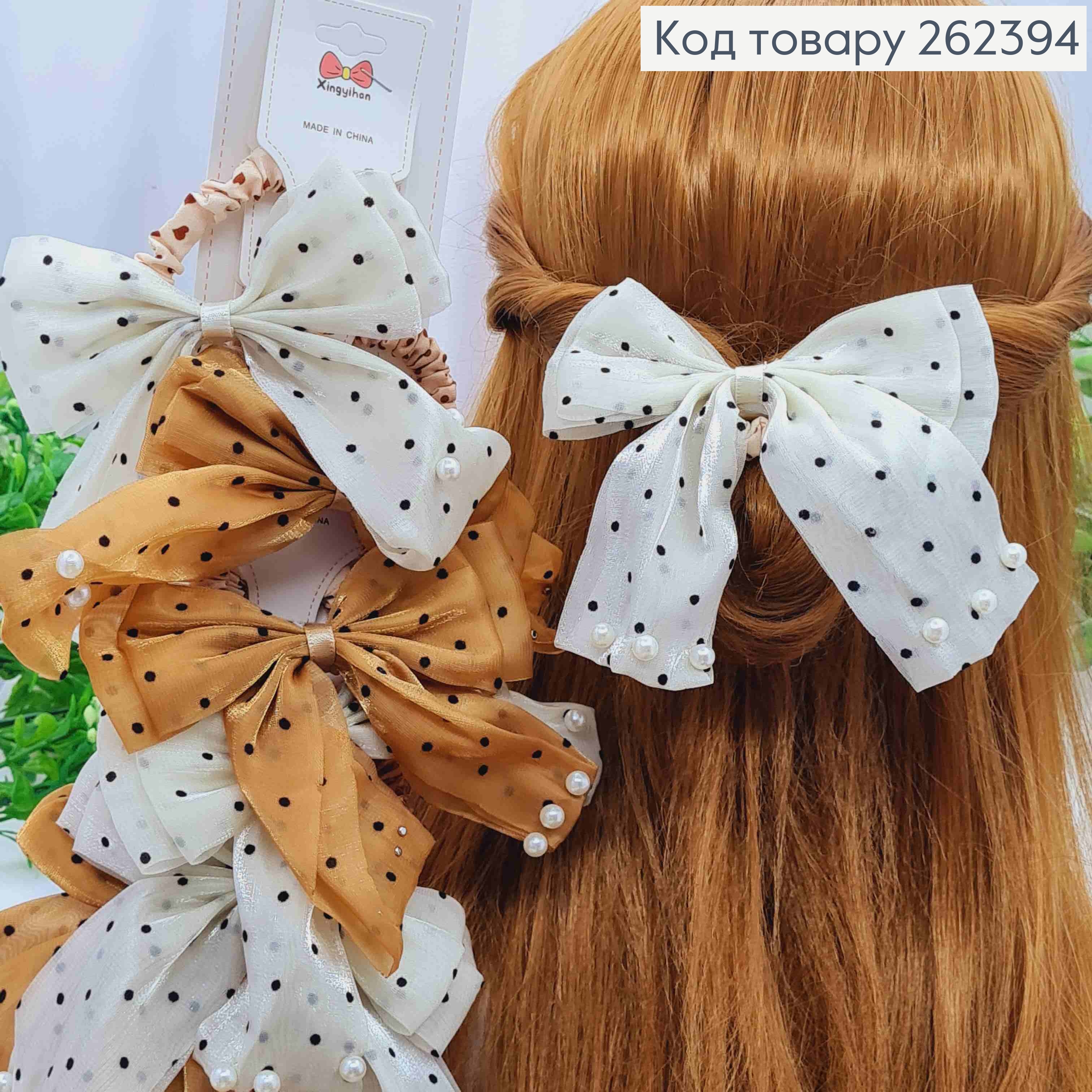 Бант в Горошок з Бусинами Пастельні кольори в асорт., на резинці 5,5см, тканина органза, роз.11*10см