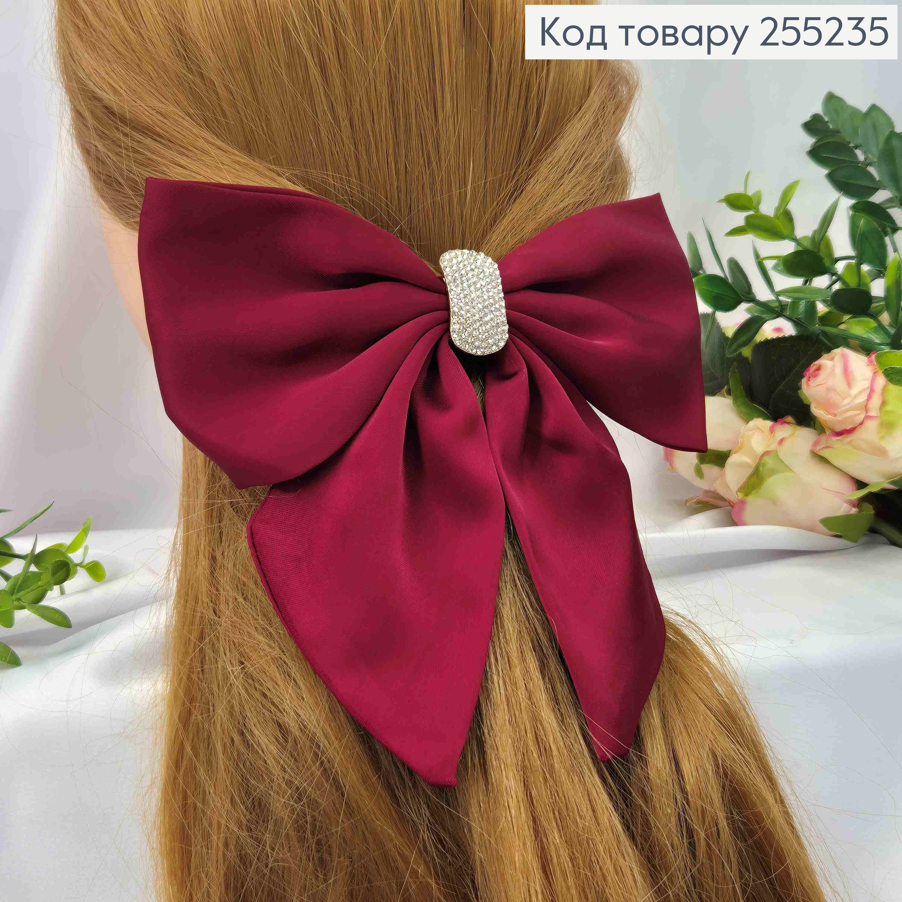 Бант з камінцями, БОРДОВИЙ, атласний , на заколці автоматик, розмір 16*16см