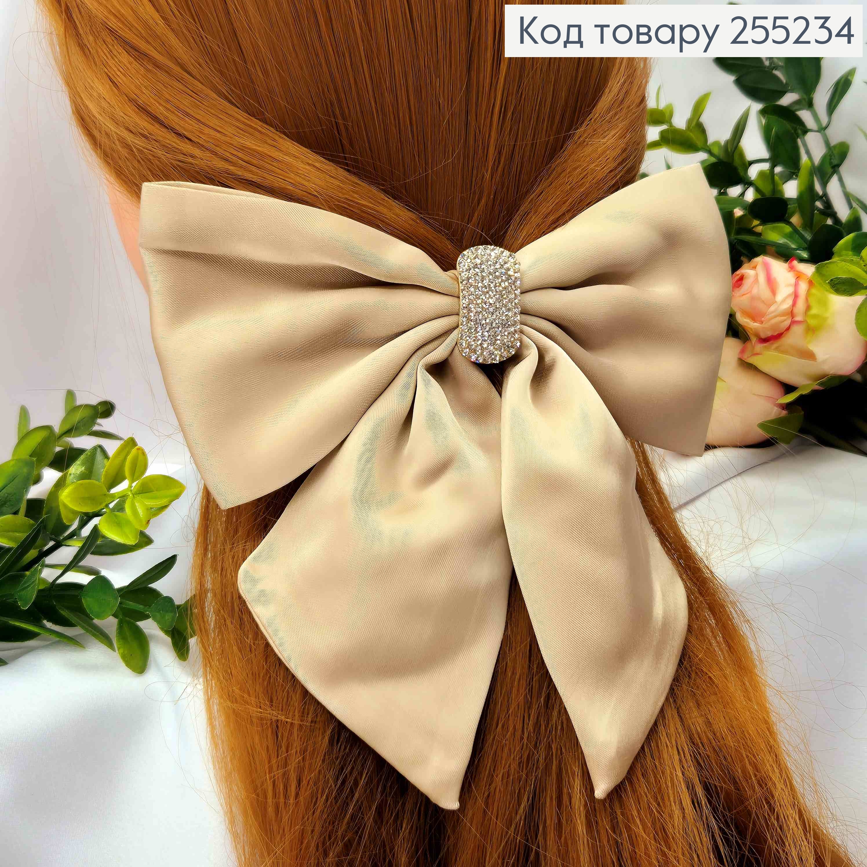 Бант БІЛОГО кольору зі стразами, на заколці 5,5, тканина атлас, розмір 10*6,5см, Україна 276163 фото