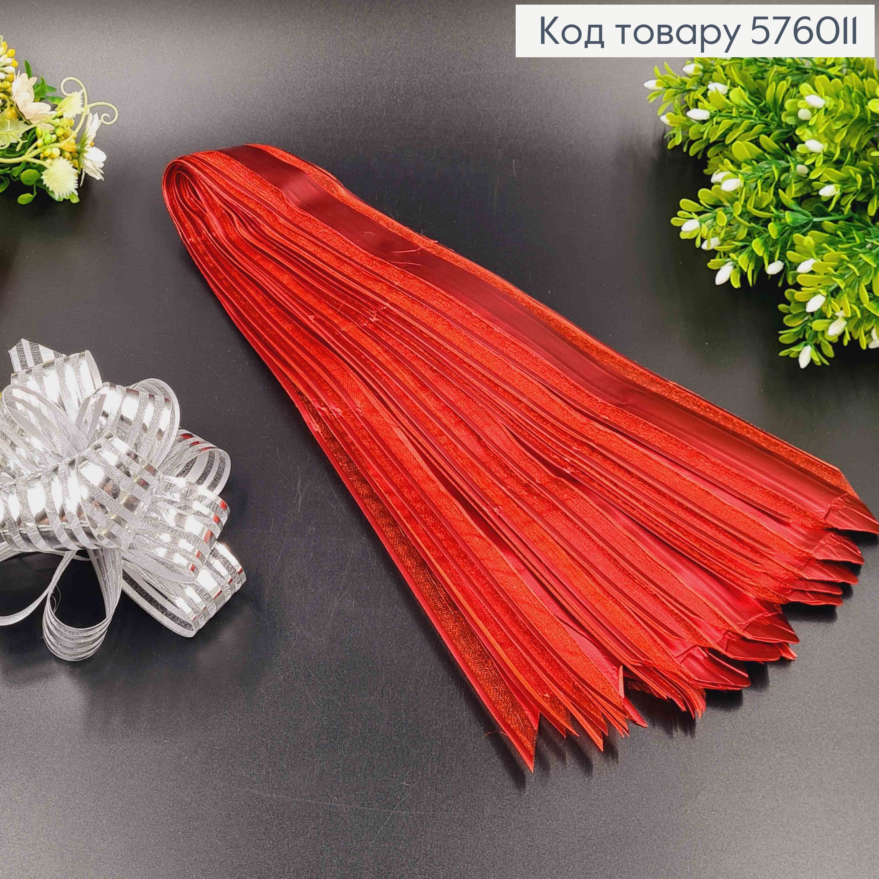 Бант-затяжка для подарунків(10шт, ЧЕРВОНОГО кольору, смугастий, шир. 5см, у складеному вигляді 16см. 576018 фото