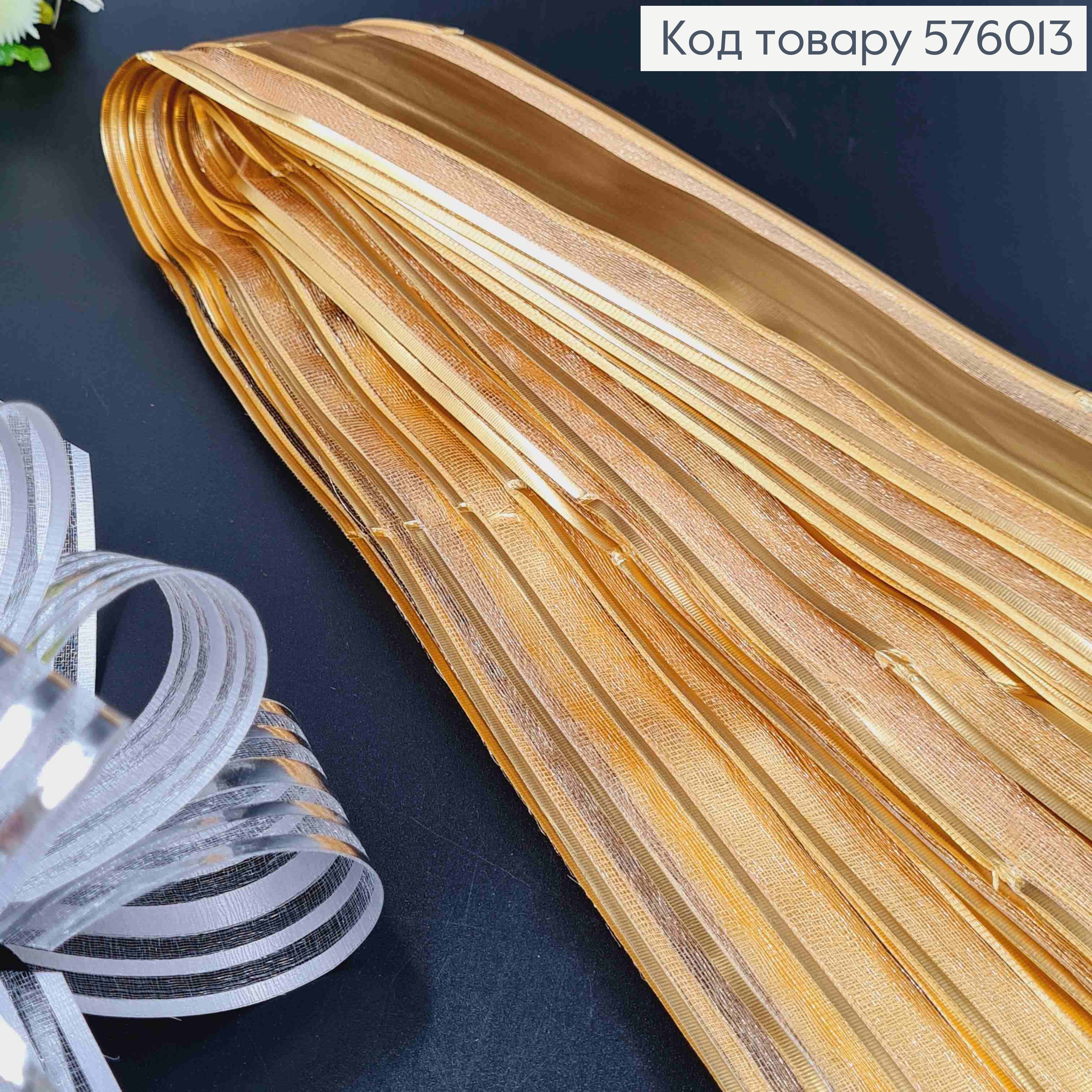 Бант-затяжка для подарунків(10шт), ЗОЛОТОГО кольору, смугастий, шир. 5см, у складеному вигляді 16см. 576016 фото