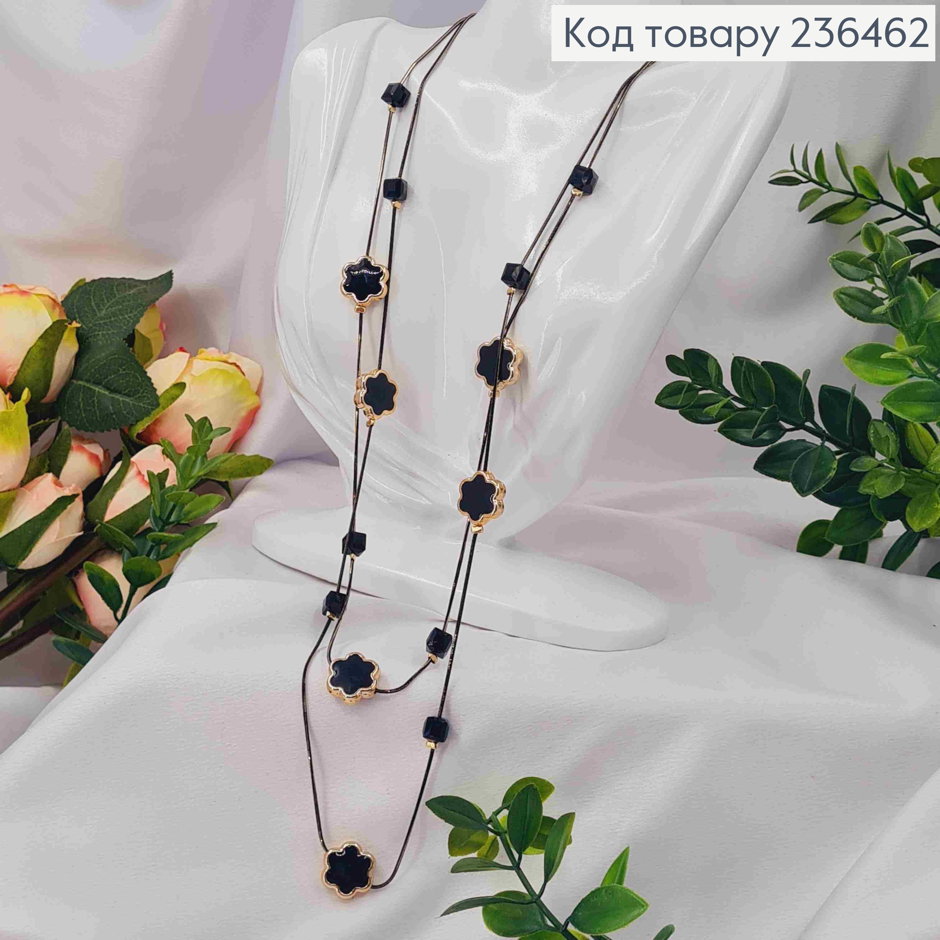 Біжутерія на шию подвійна з Бусинками-Квітками та квадратними бусинами, 80+6м, Чорного кольору