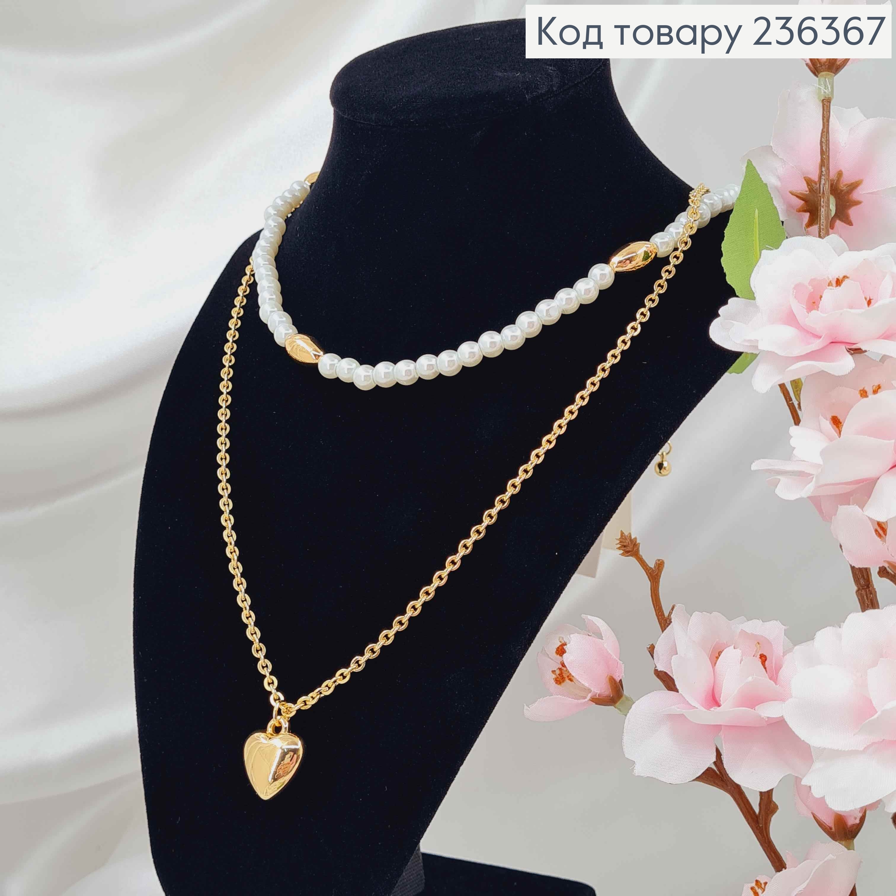 Біжутерія на шию подвійна, з Перлинами та Серцем, 56+8см, золотого кольору, Fashion Jewelry