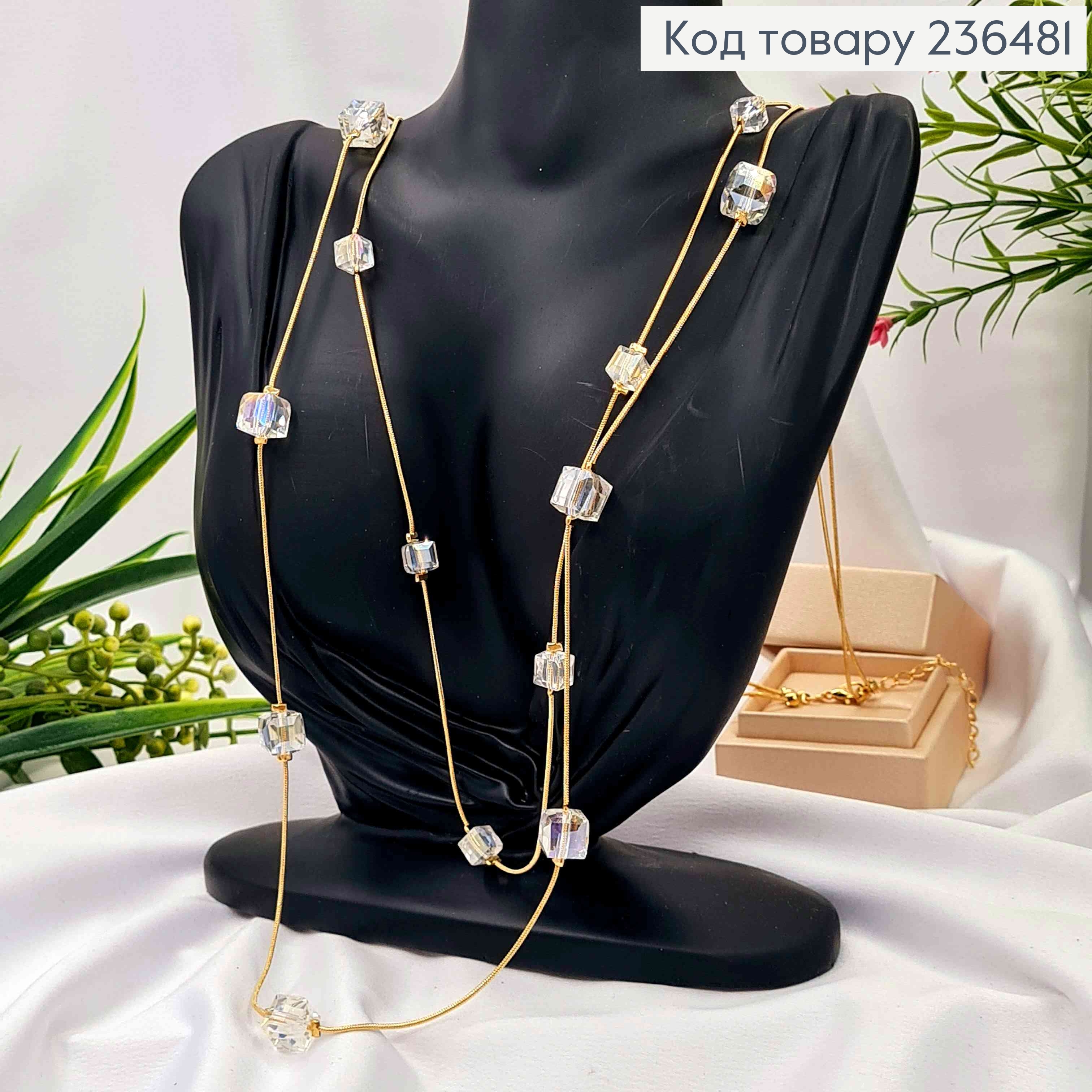 Біжутерія на шию подвійна з Прозорими квадратними бусинами, 90+4см, Золото кольору
