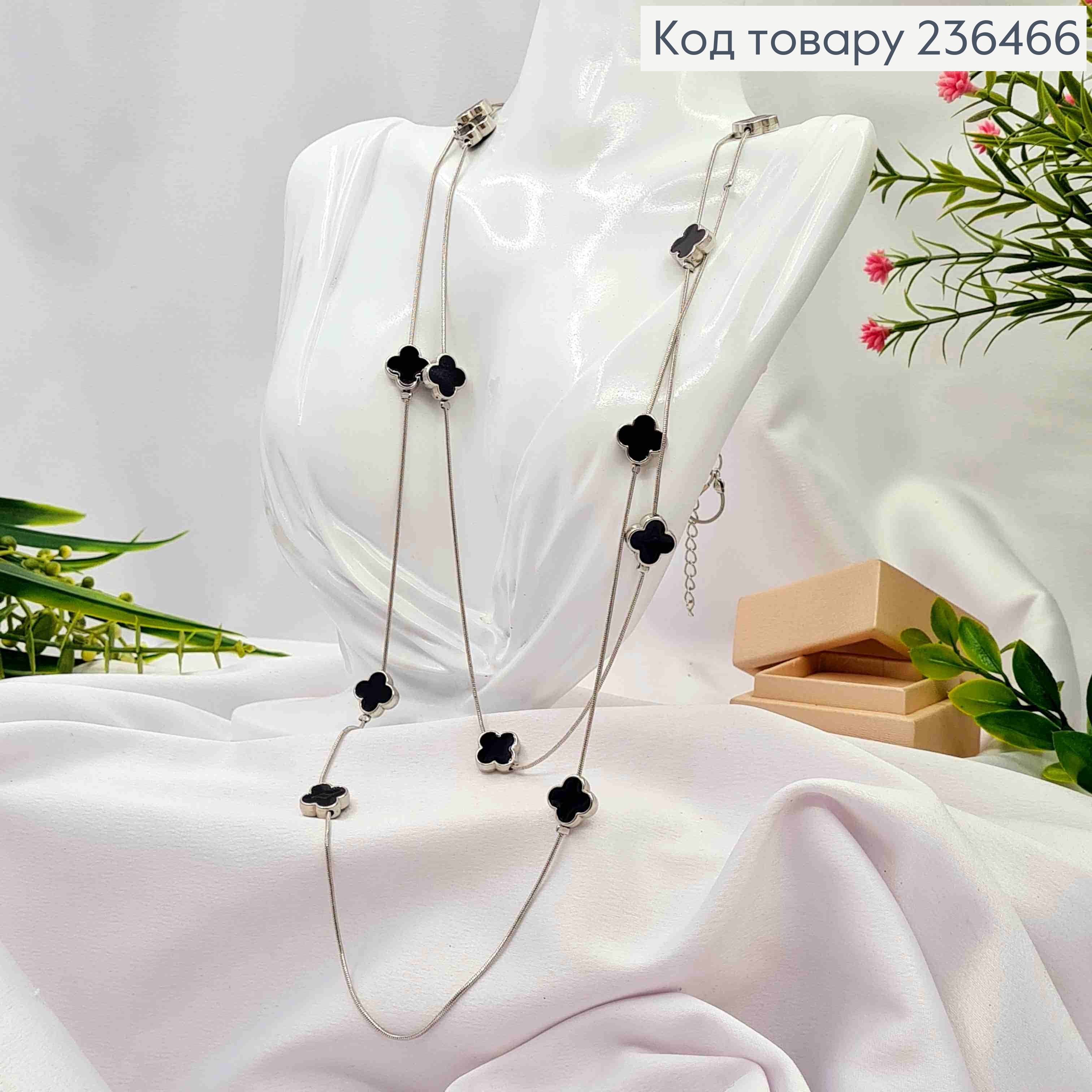 Біжутерія на шию подвійна з Van Cleеf та квадратними бусинами, 80+6см, Чорного+Срібло кольору