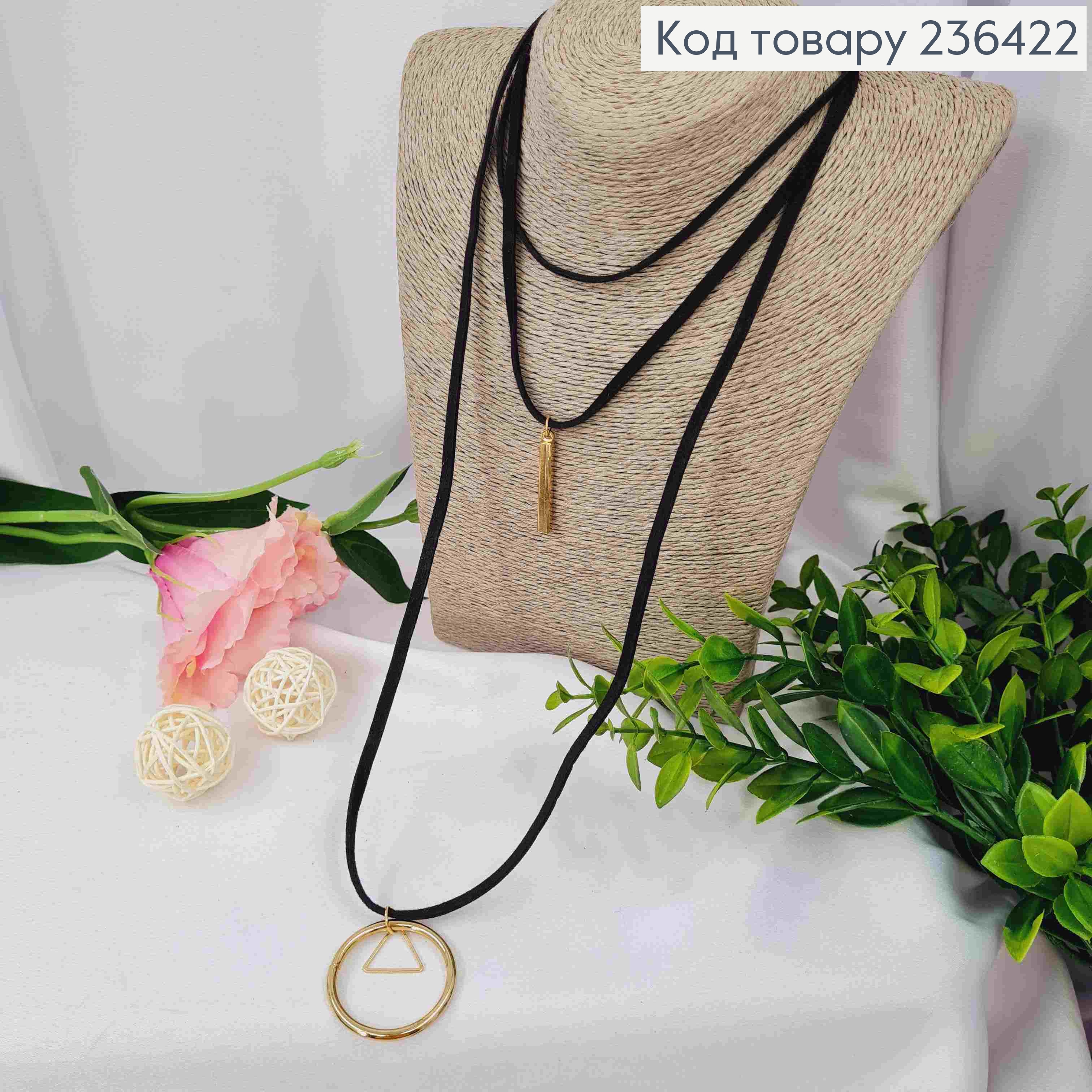 Біжутерія на шию Потрійна, Еко Шкіра з Підвіскою, 70+7см, Чорного кольору, Fashion Jewelry