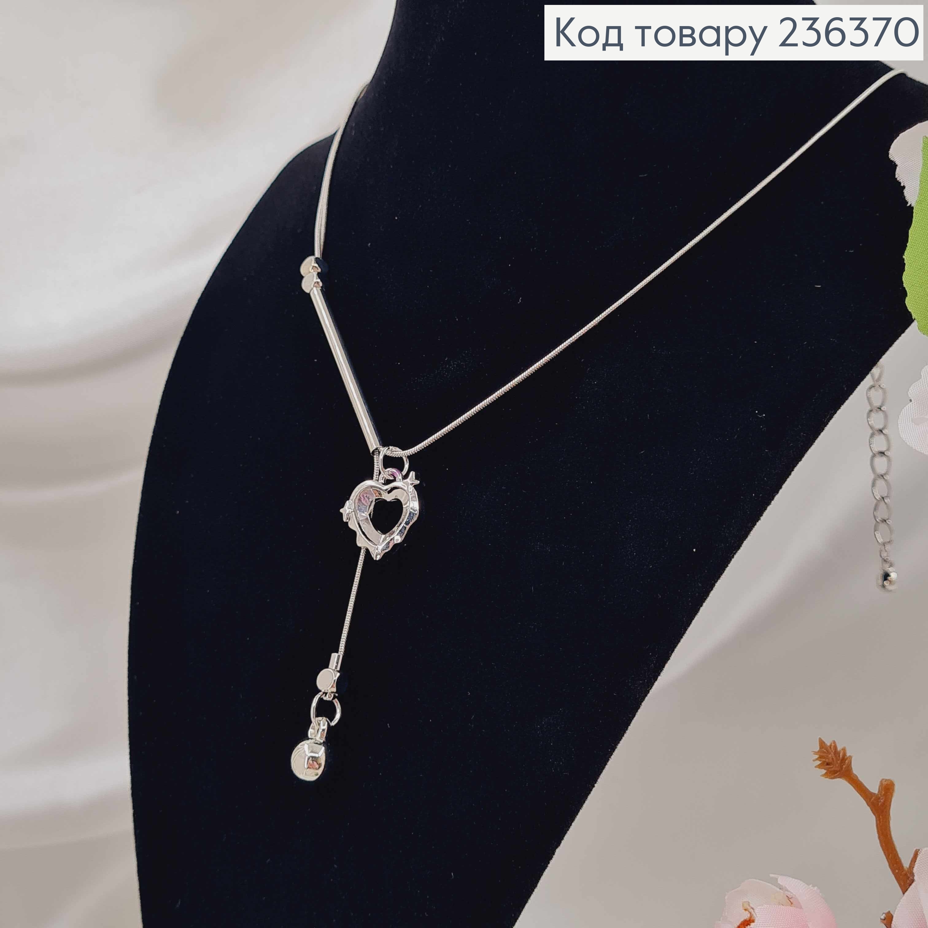 Біжутерія на шию, Серце з чорним камнем + подовжувач, 45+8см, Fashion Jewelry