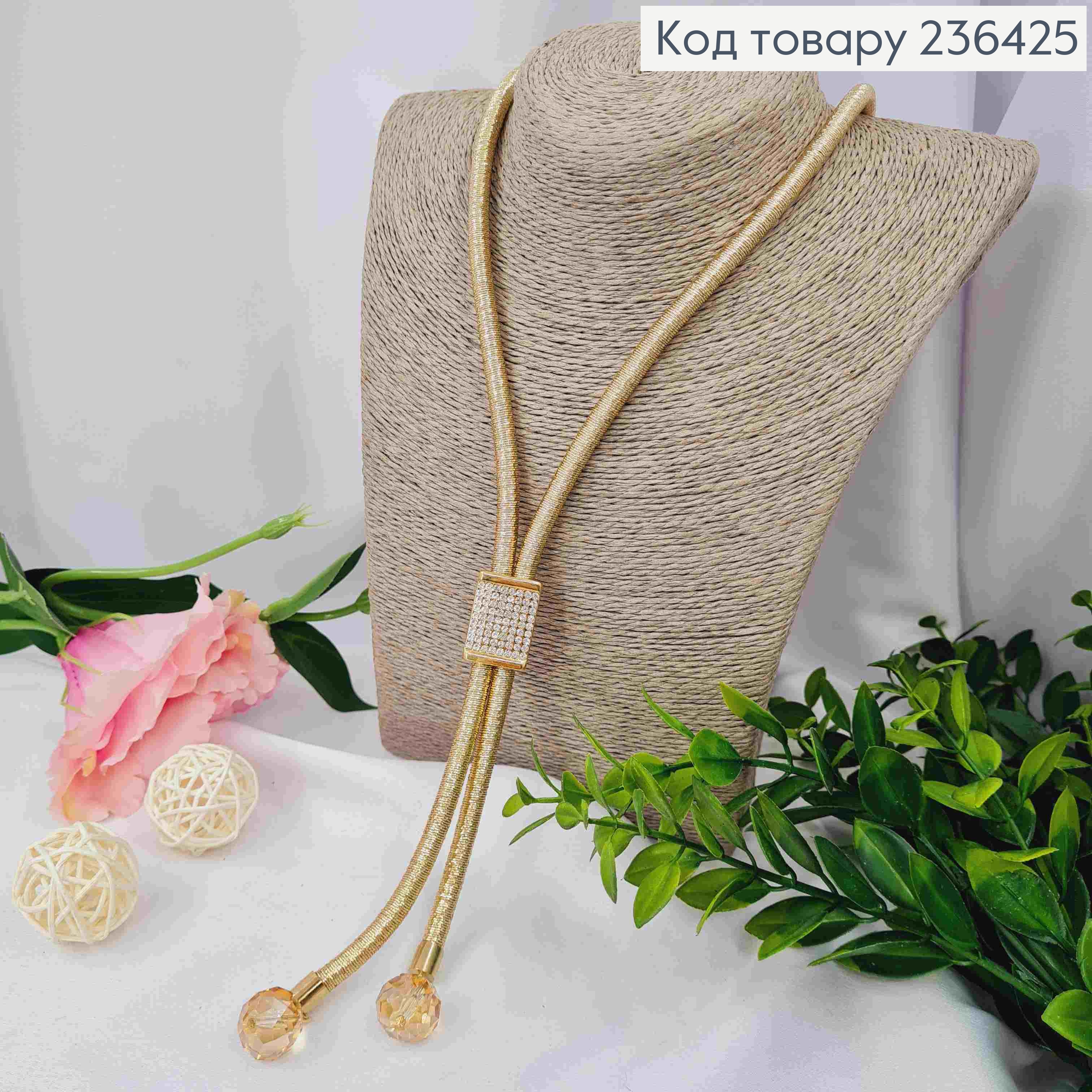 Біжутерія на шию, Шнурок плетений з Брошкою в камінцях, 84см, Золотого кольору, Fashion Jewelry
