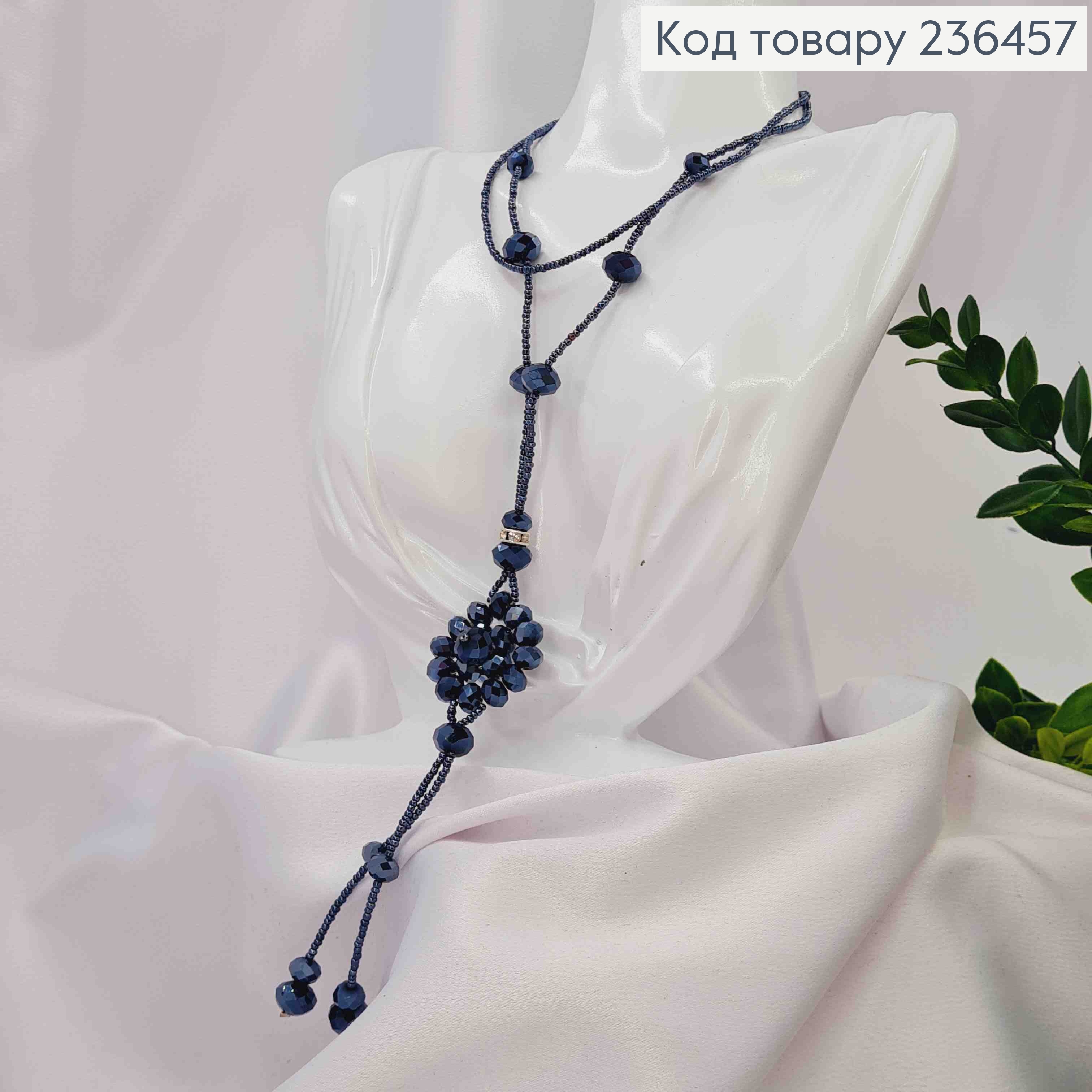 Біжутерія на шию з Бісеру та Бусин, 68см, Темно-Синього кольору, Hand Made