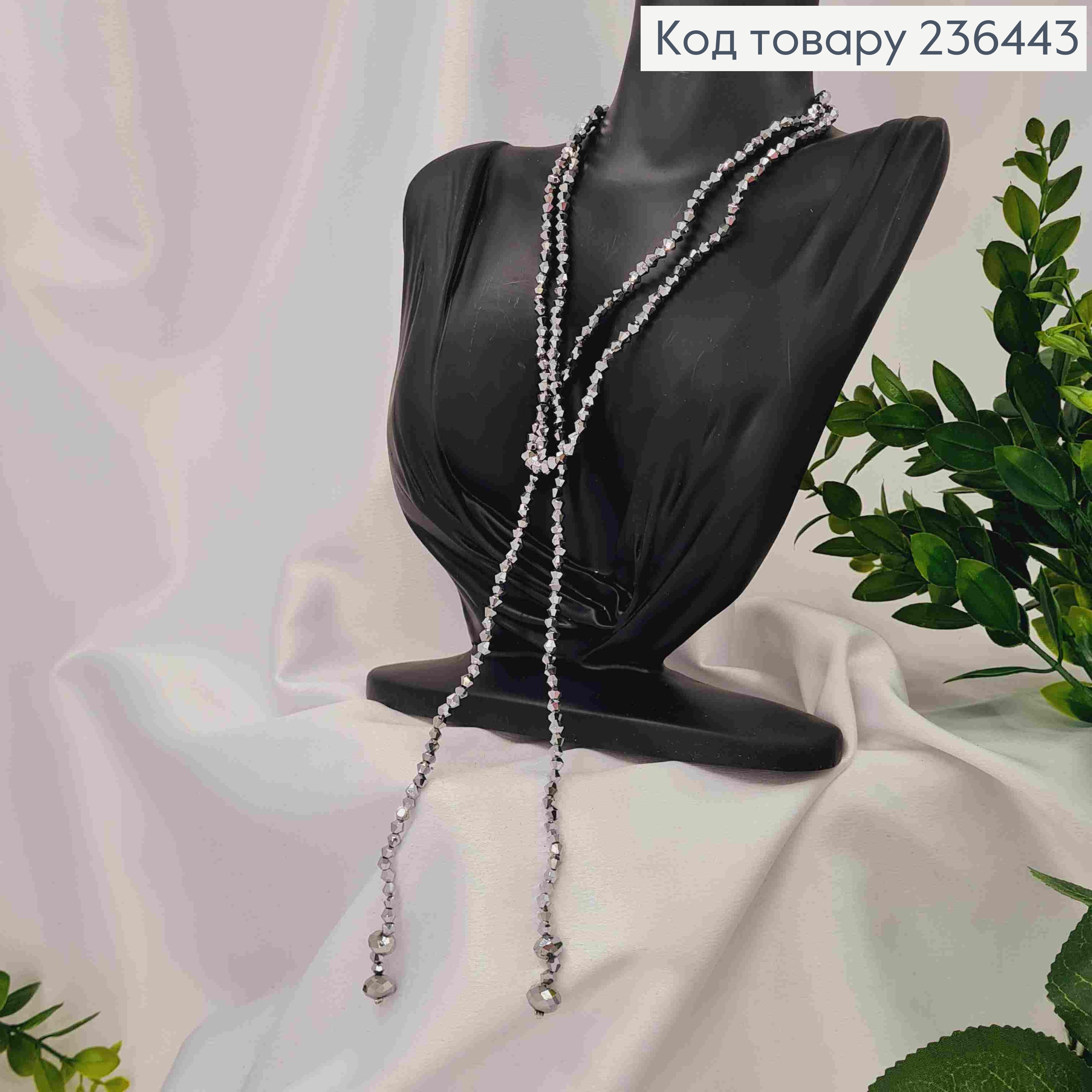 Біжутерія на шию з БУСИНОК, 116см, кольору Срібний-Металік, Hand Made