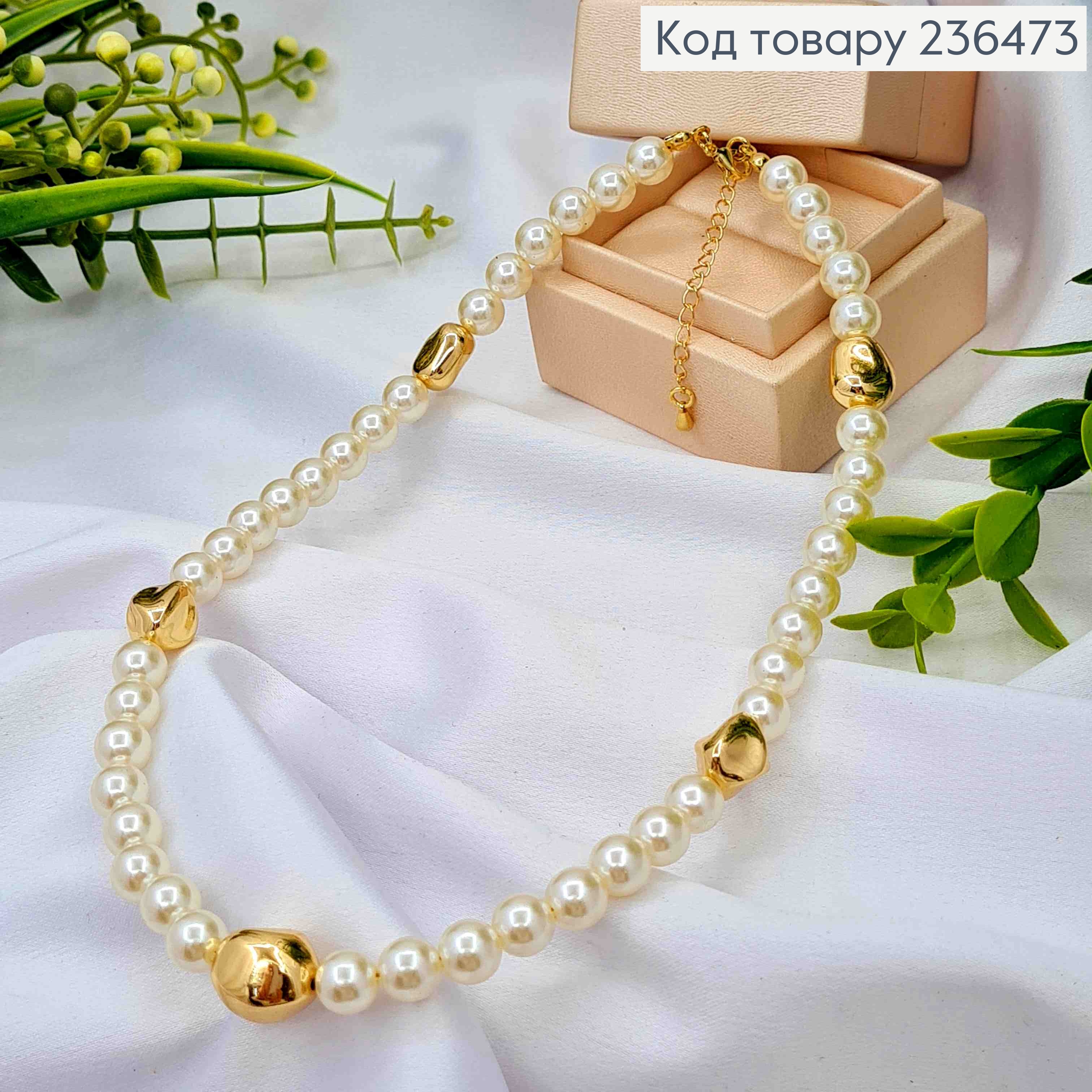 Біжутерія на шию з Перламутрових бусин та Золотих фігурних бусин, розмір 41+5см