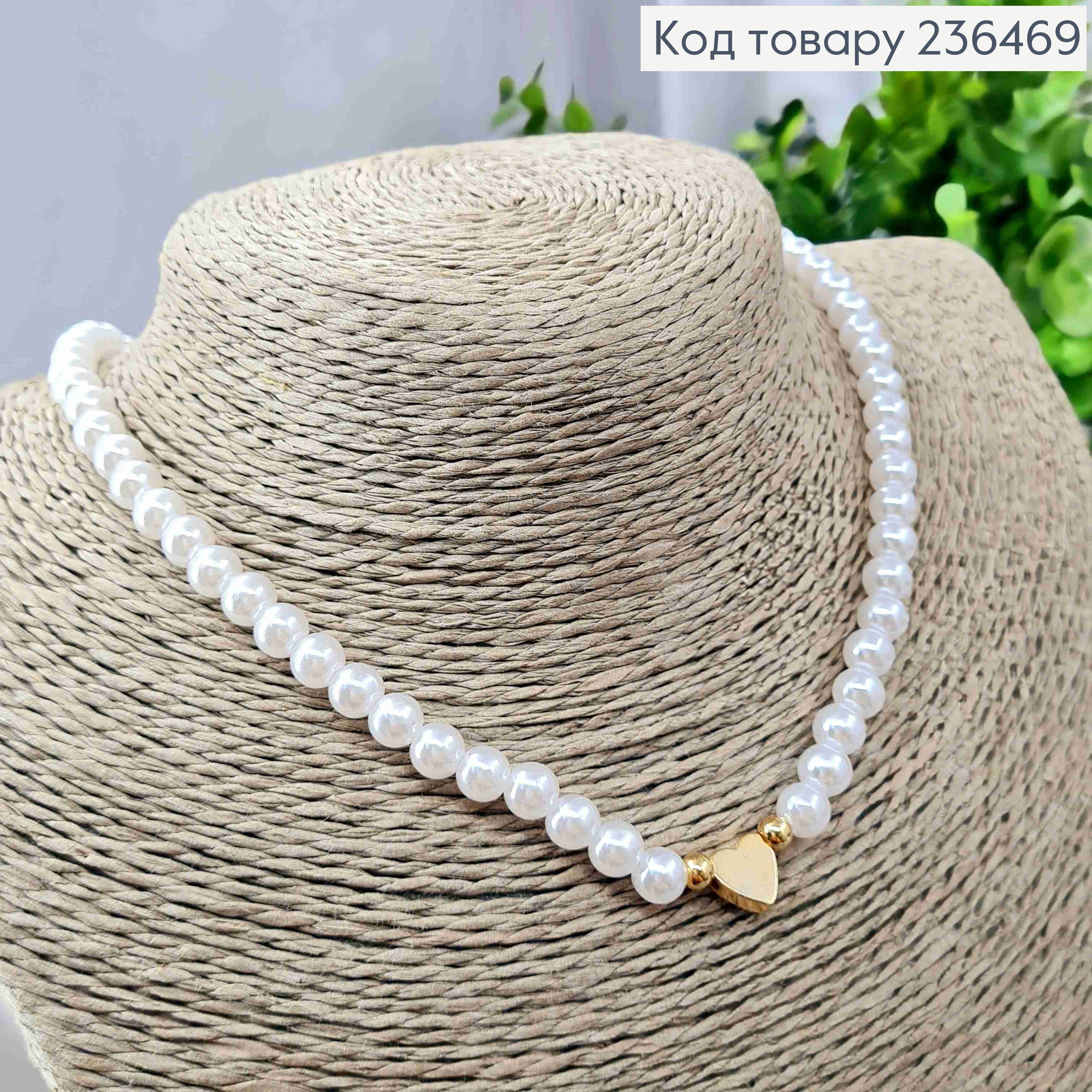 Біжутерія на шию з Перламутрових бусин з підвіскою "Серце" золотого кольору, 41+5см, Fashion Jewelry