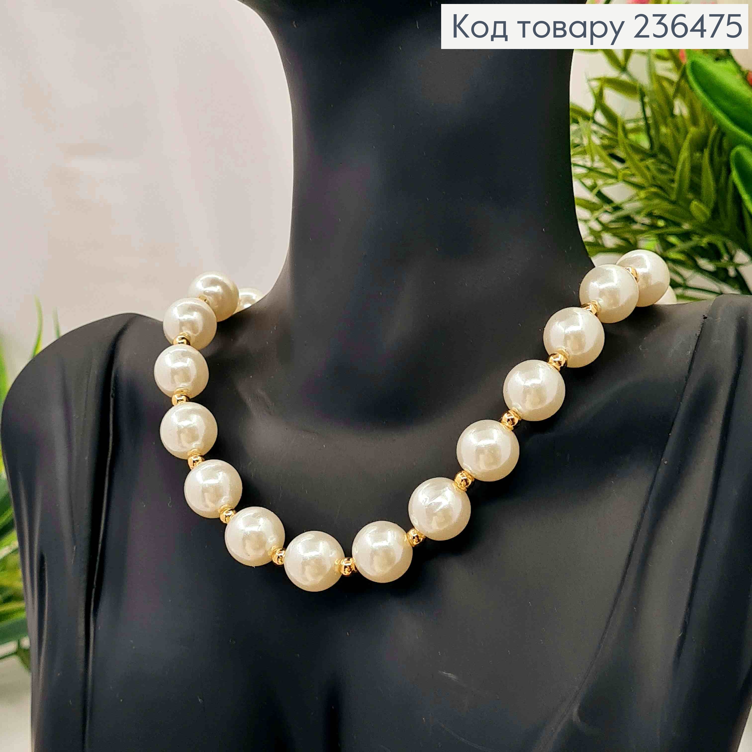 Біжутерія на шию з Перламутрових та Золотих бусин, розмір 37+5см