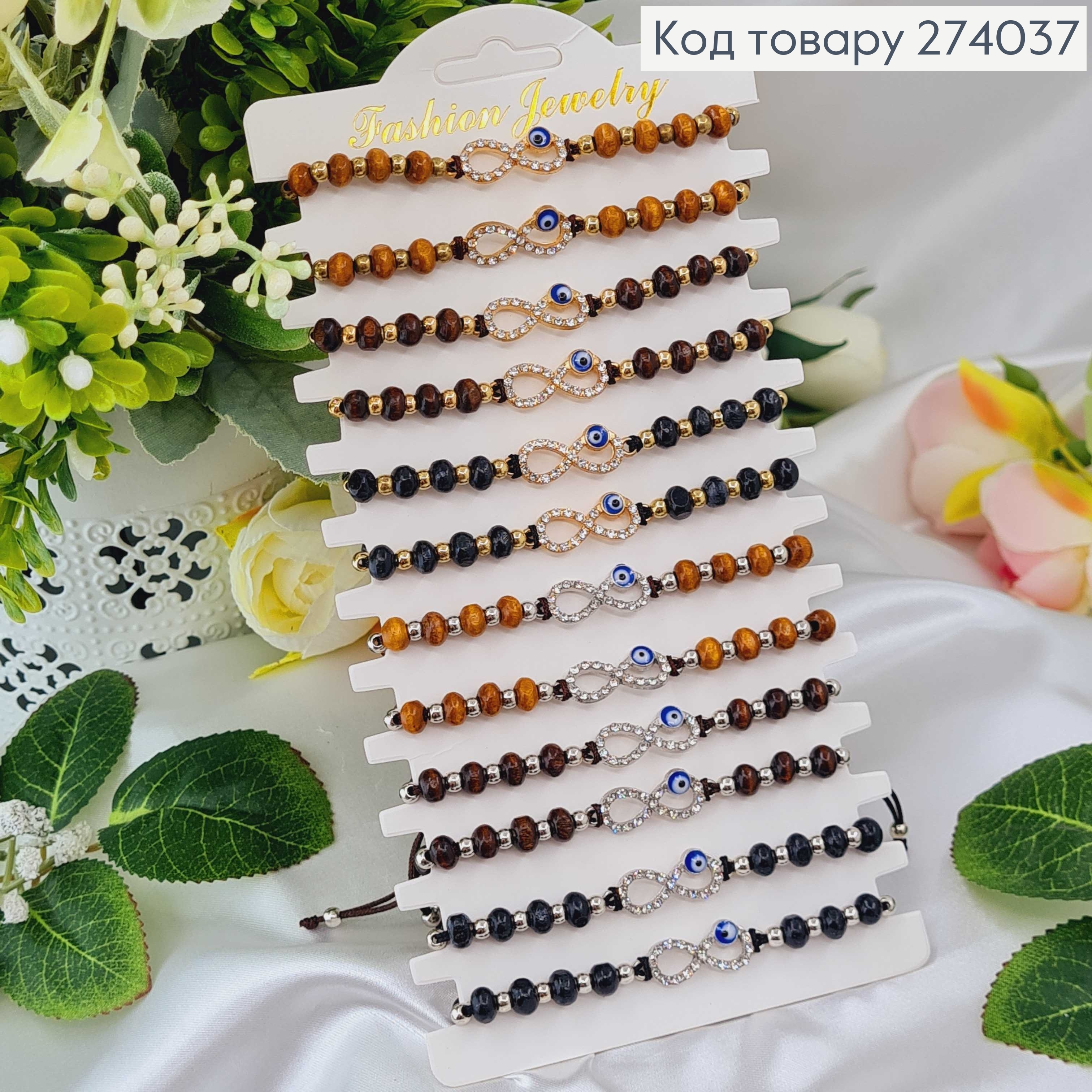 Браслет нитка оберіг безкінечне око з камінцями та бусинками в асорт.