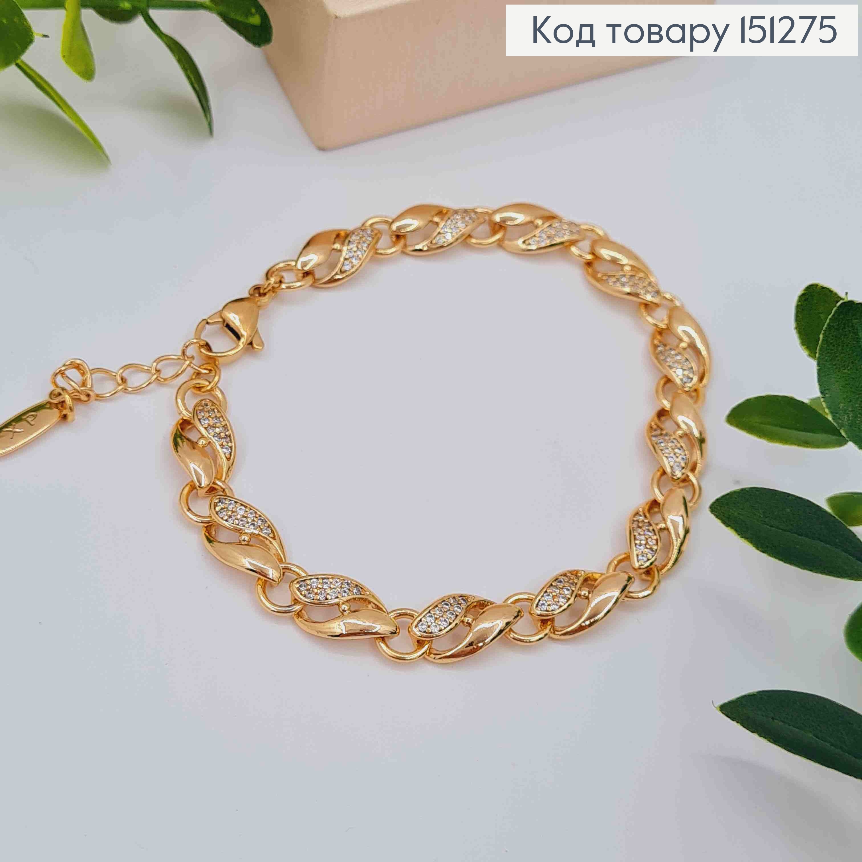 Браслет плетіння пластинками "Листя" прикрашений камінцями, довжина 17+2см, Xuping 18K 151291 фото