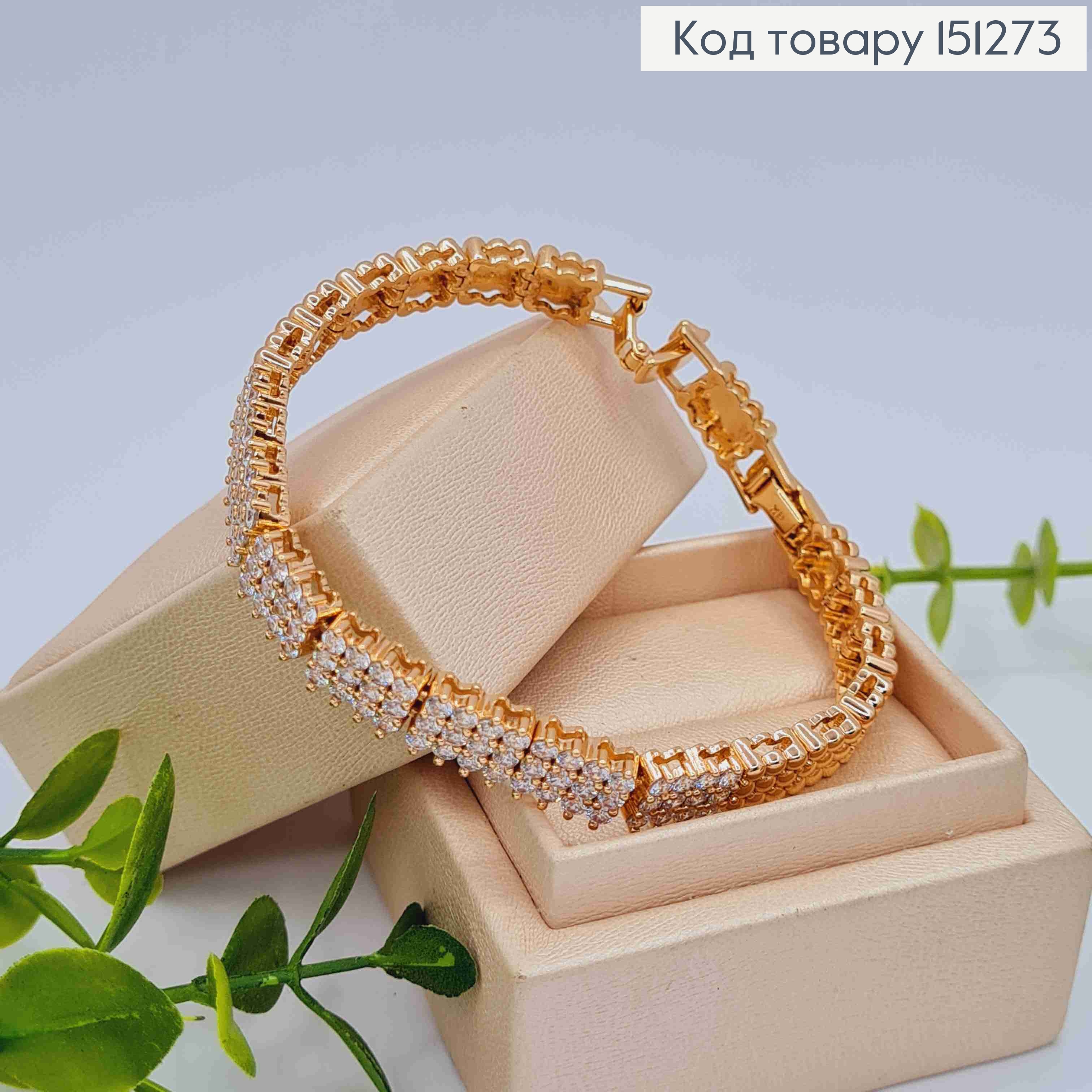 Браслет плетіння фігурними пластинками в Блискучих камінцях, довжина 17+2см, Xuping 18K 151293 фото