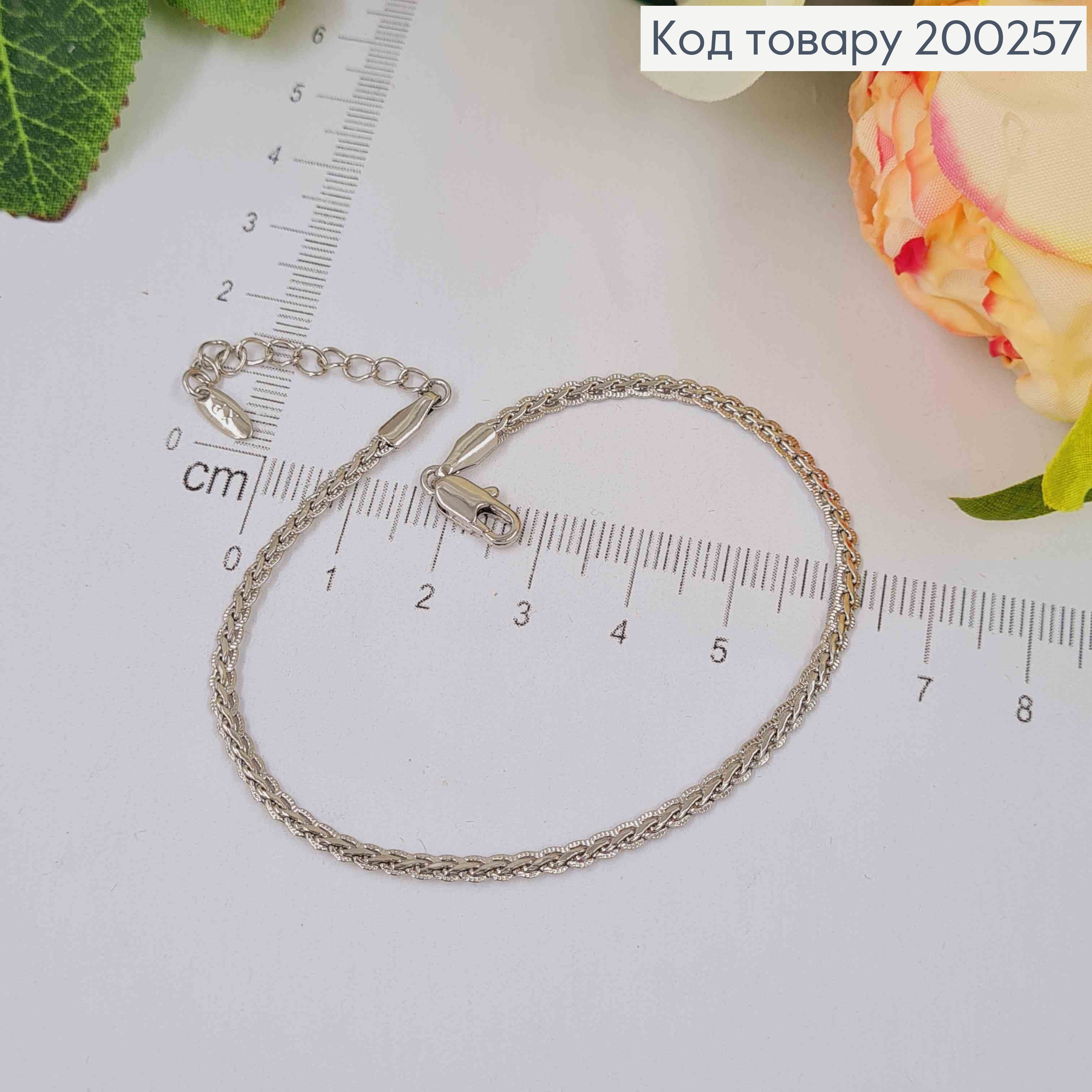 Браслет родований, плетіння косичка, довж. 19+3см, шир. 2мм, Xuping
