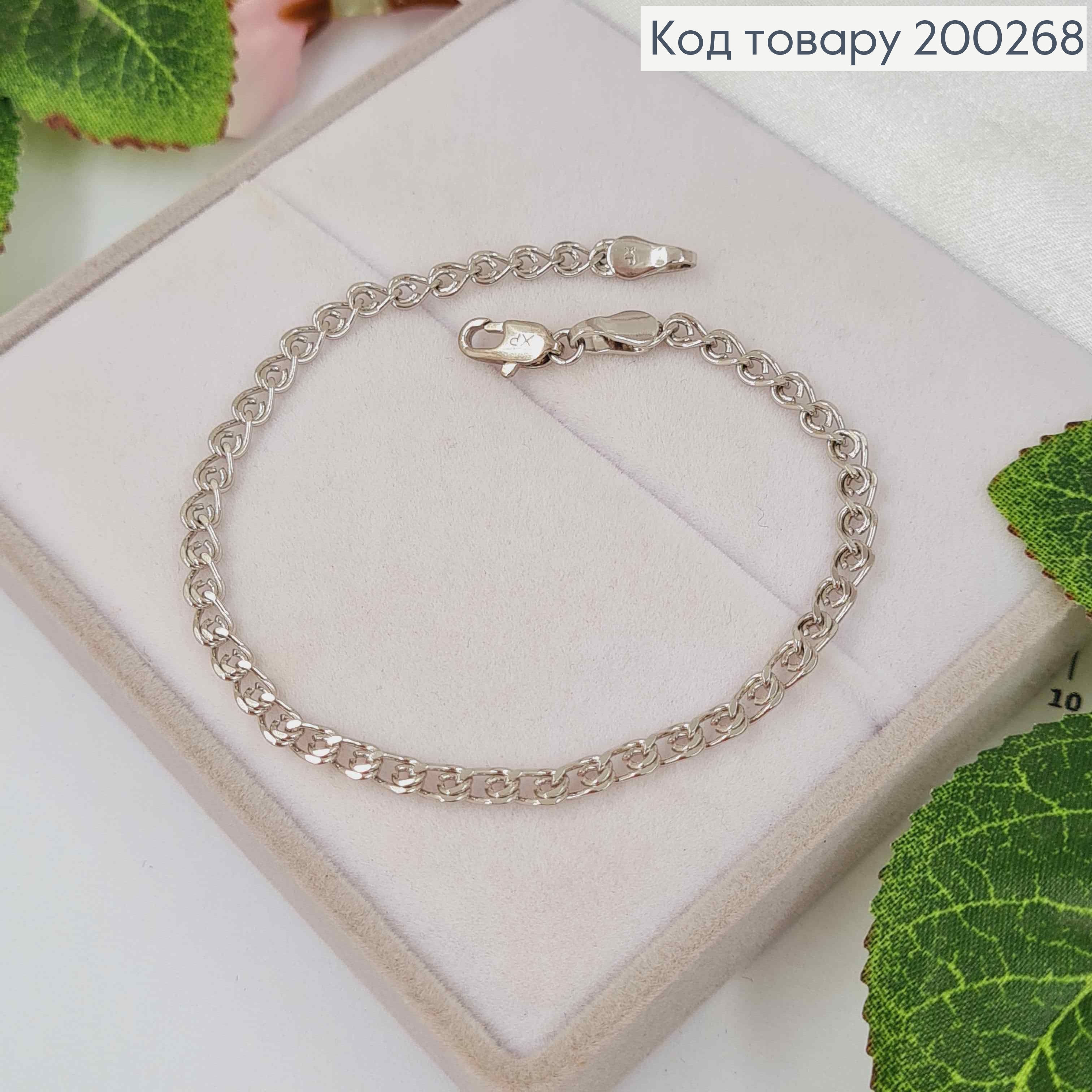 Браслет родований, плетіння Краплинка з Вузликом,19см, Xuping