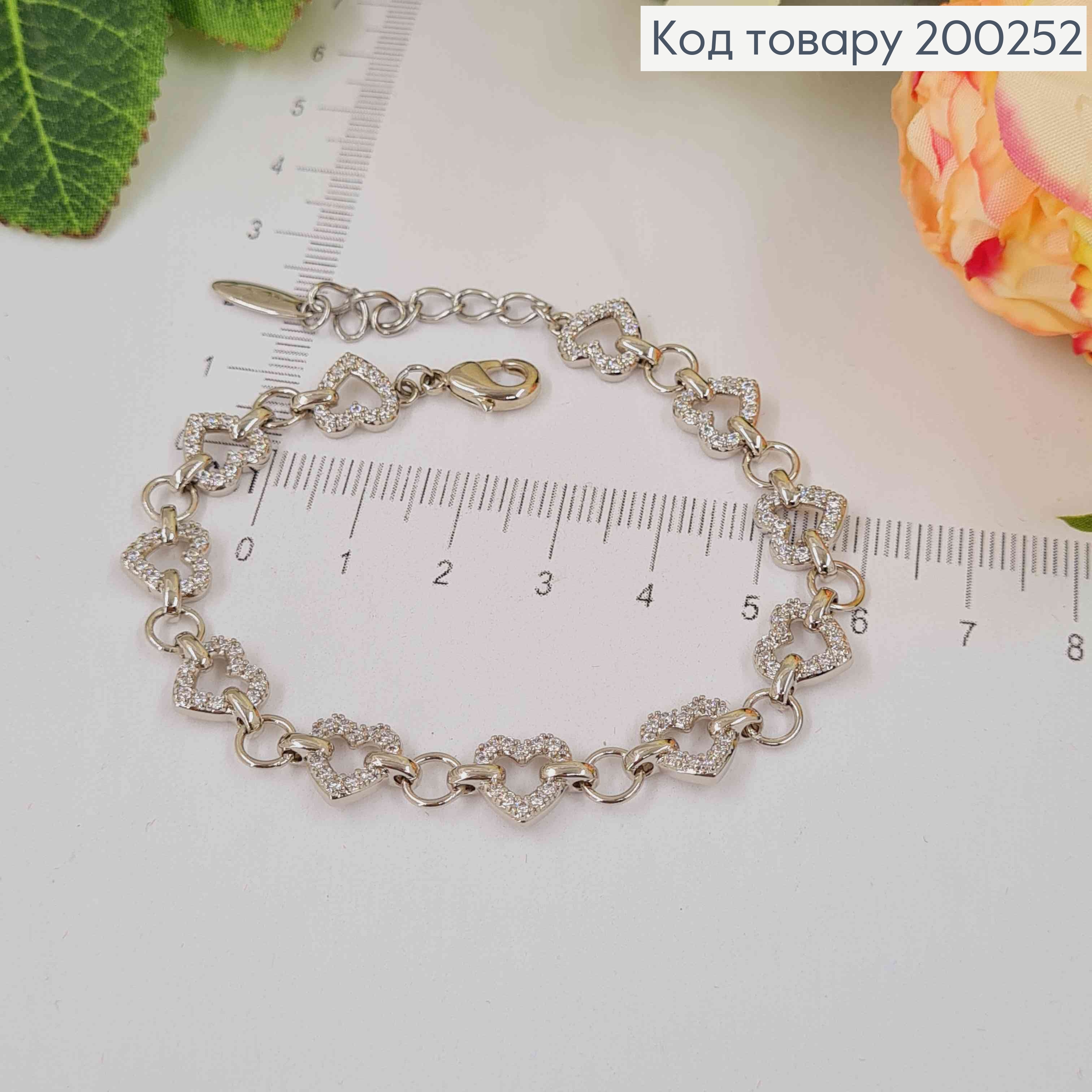 Браслет родованный, плетение Сердечками, в камнях, дл. 17,5+3см, Xuping