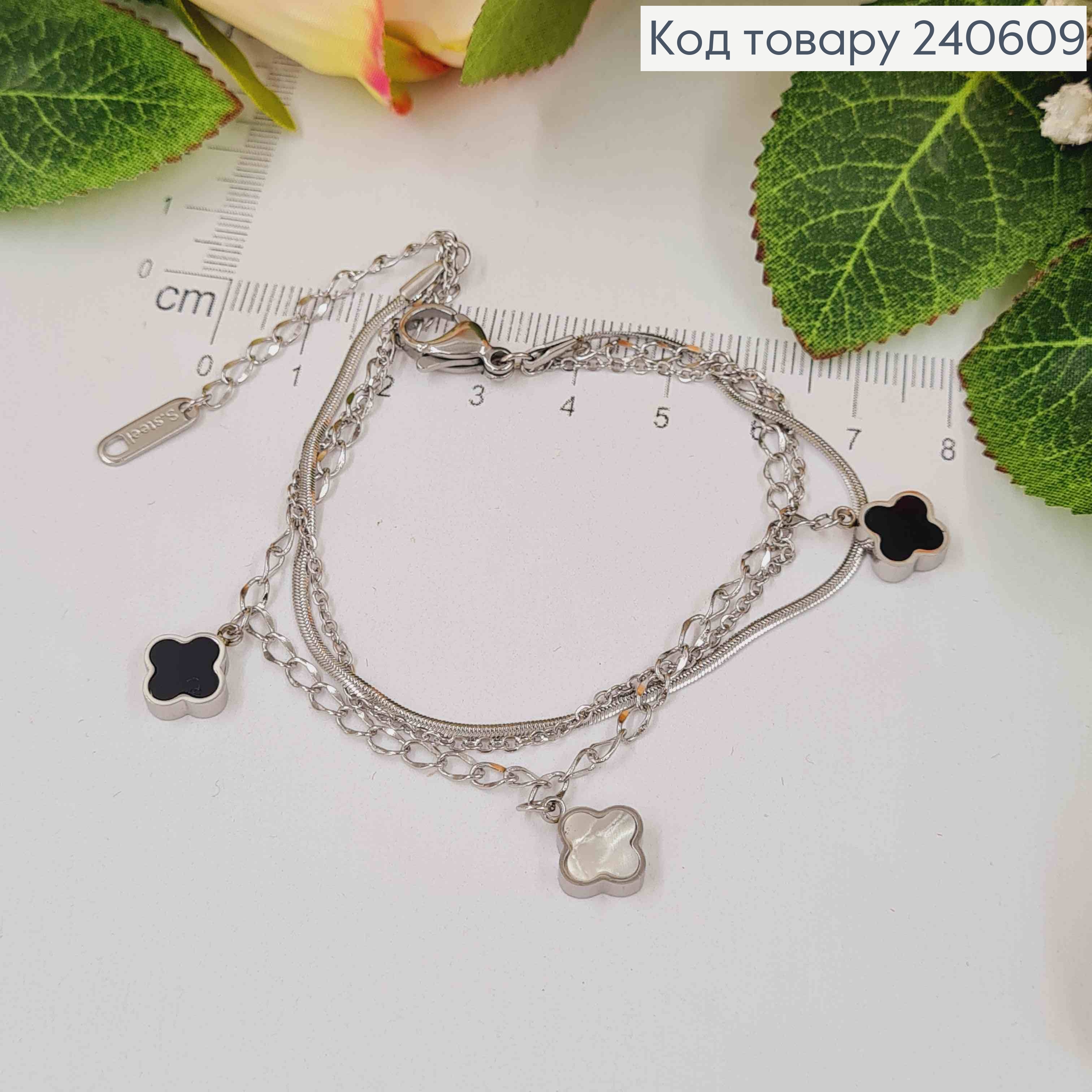 Браслет срібного кольору, "Van Cleef" з білою і чорною емаллькою, 17+3см сталь Stainless Steel