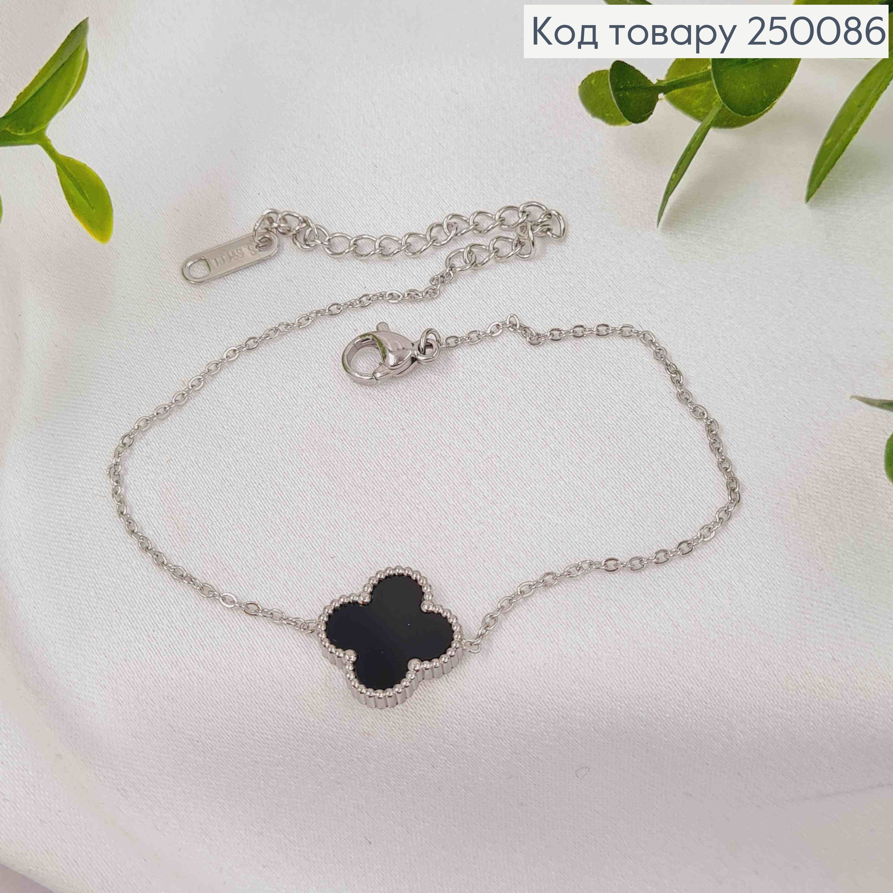 Браслет срібного кольору, Van Cleef з Чорною емаллю, 18,5+6см, сталь Stainless Steel
