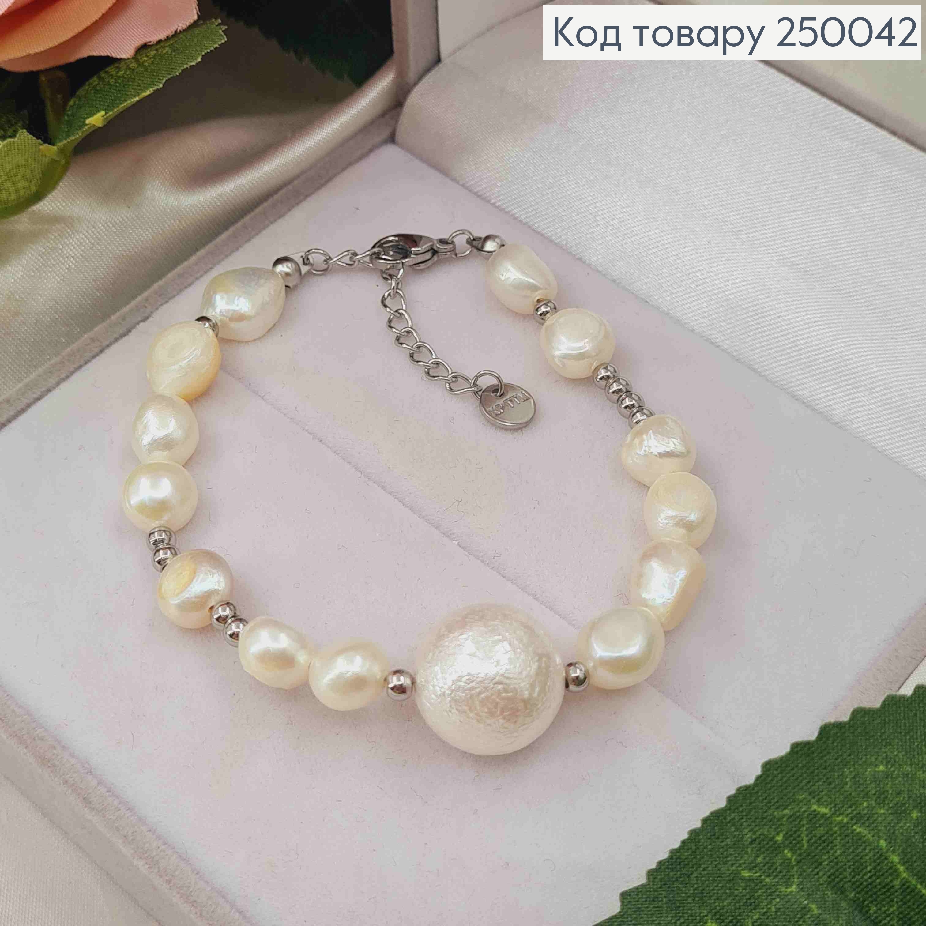 Браслет срібного кольору, з Бусинок різного розміру і форми, 17+3,5см, сталь Stainless Steel