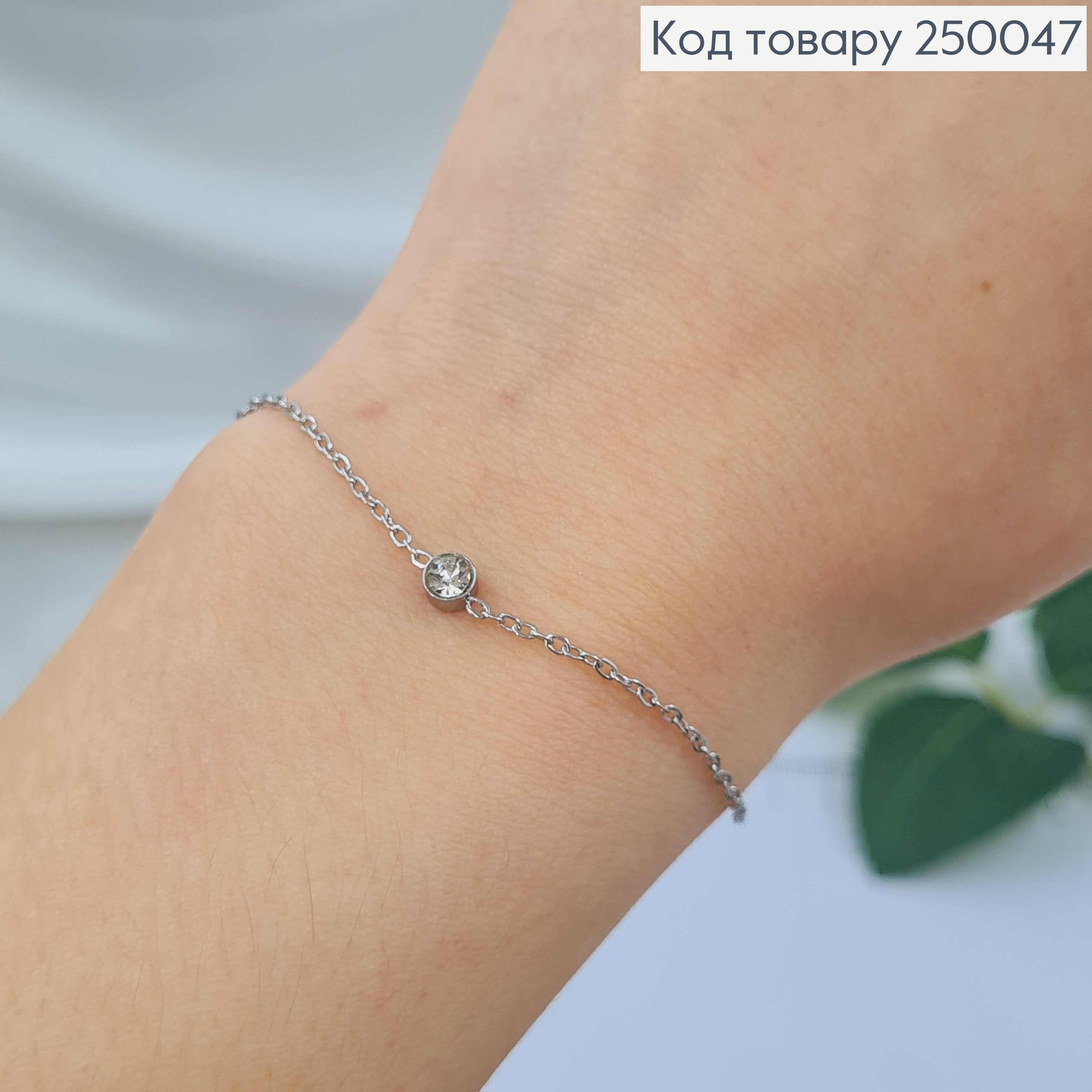 Браслет срібного кольору, з Камінчиком в оправі (4мм), 16,5+3,5см, сталь Stainless Steel