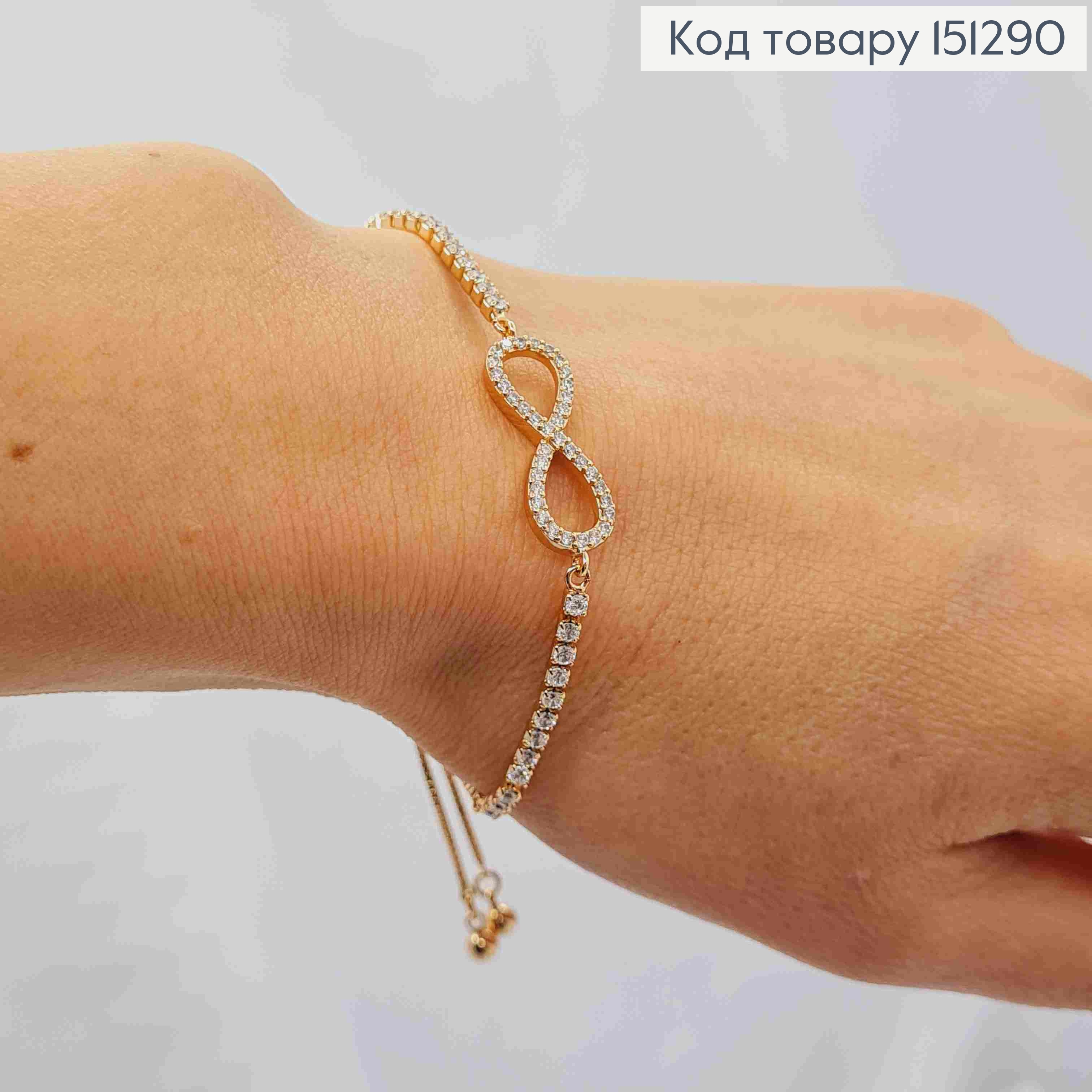 Браслет з БЕЗКІНЕЧНІСТЮ прикрашений Блискучими камінцями, регулююча довжина 26см, Xuping 18К