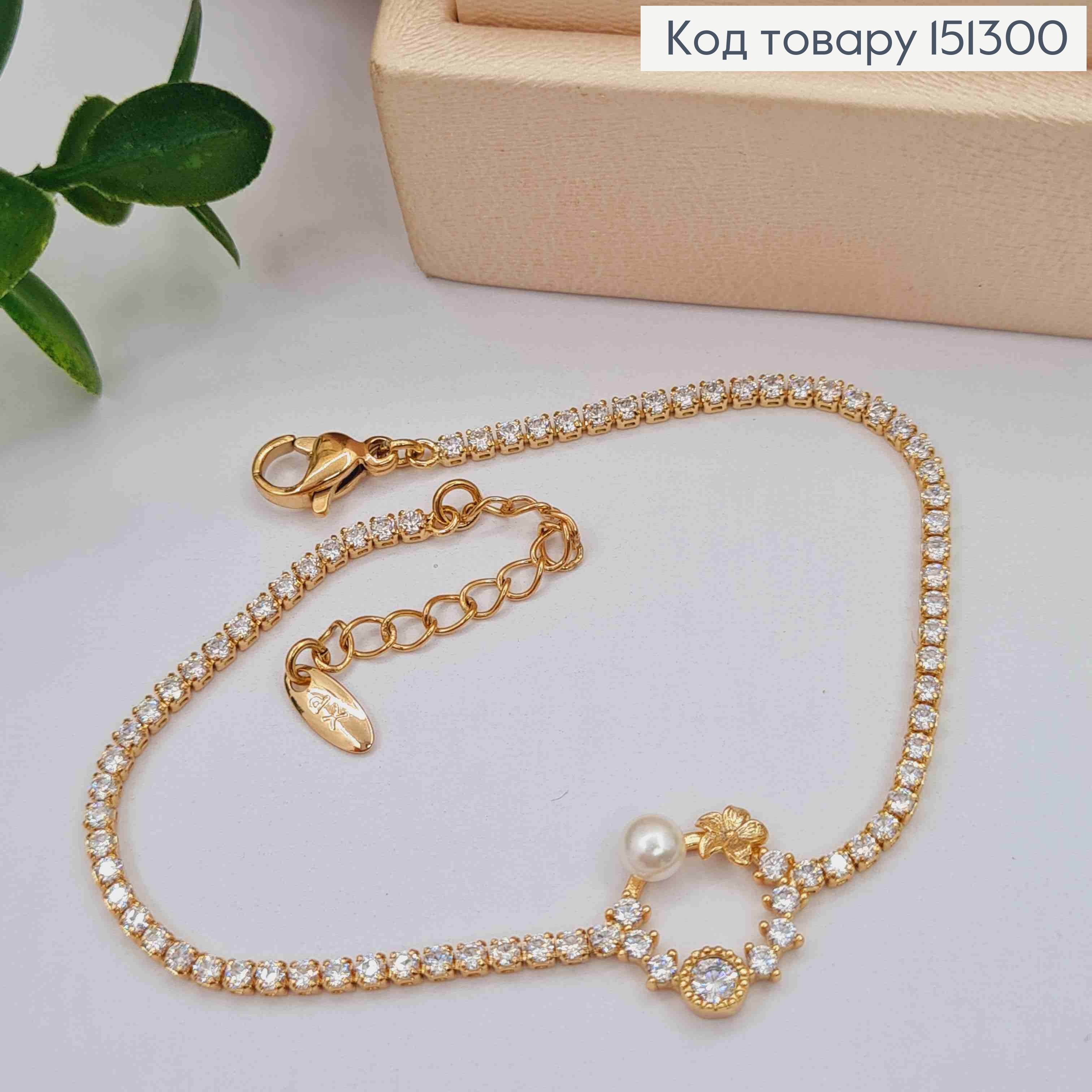 Браслет з Блискучими камінцями, Перлинкою та Квіткою, довжина 17+3см, Xuping 18K