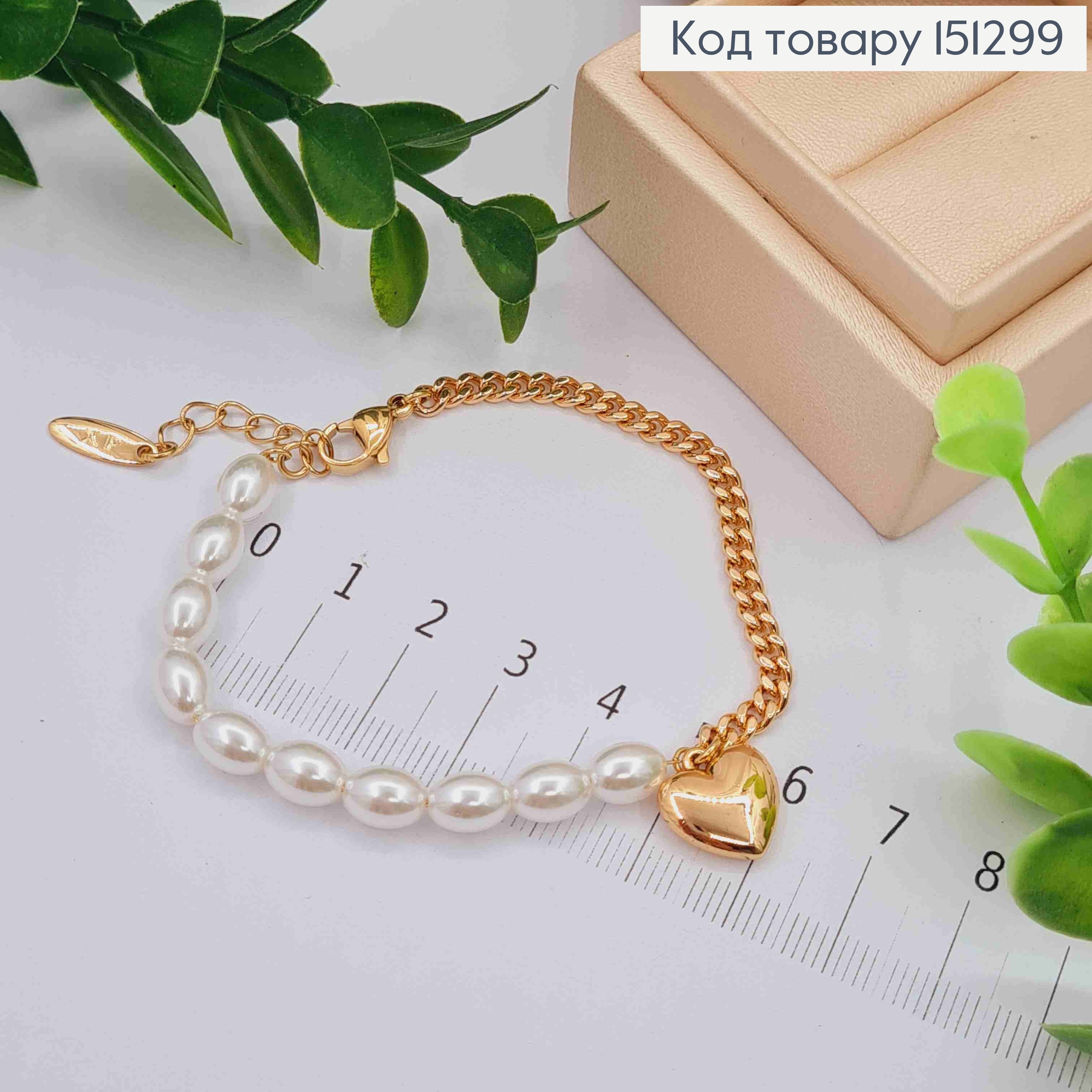 Браслет з Перламутровими та Золотими бусинами, довжина 17+3см, Xuping 18K 151298 фото