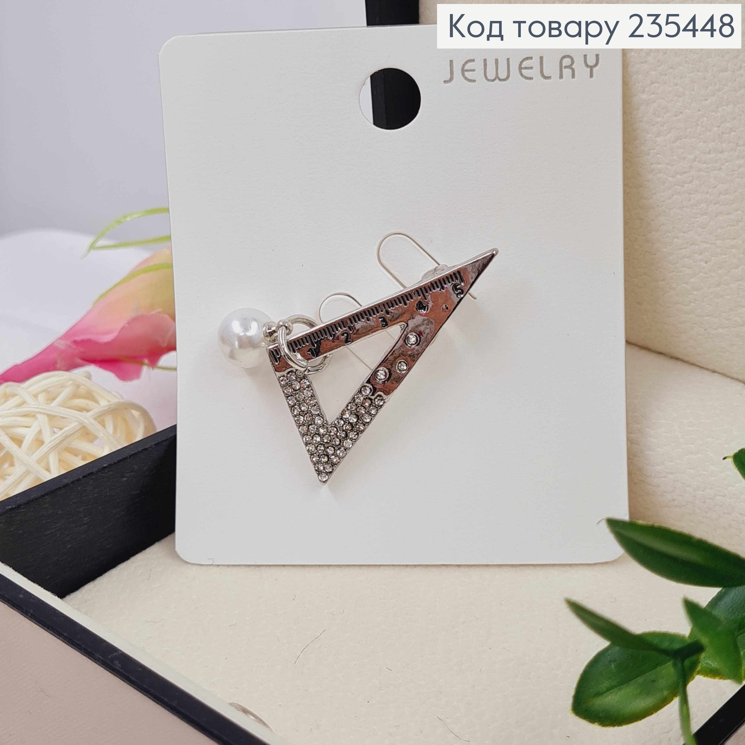 Брошка ЛІНІЙКА прикрашена камінцями та Бусинкою, 4см, Срібного кольору