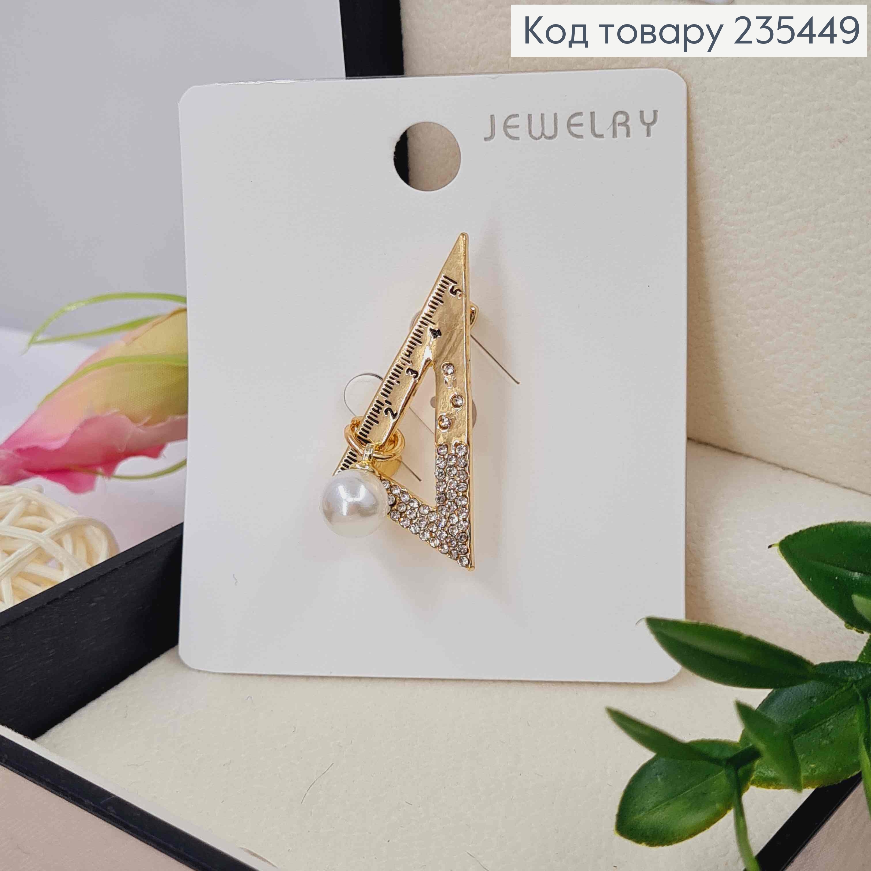 Брошка ЛІНІЙКА прикрашена камінцями та Бусинкою, 4см, Золотого кольору