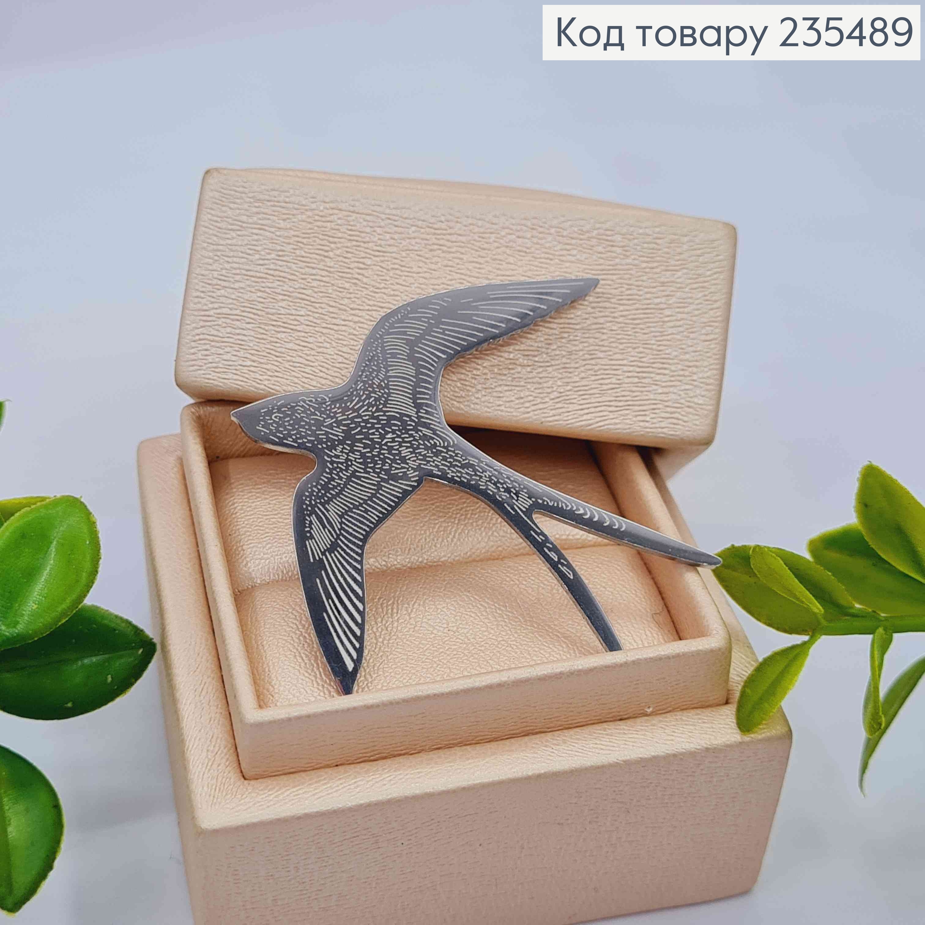 Брошка метал "Ластівочка", Срібного кольору, 4,9*5см