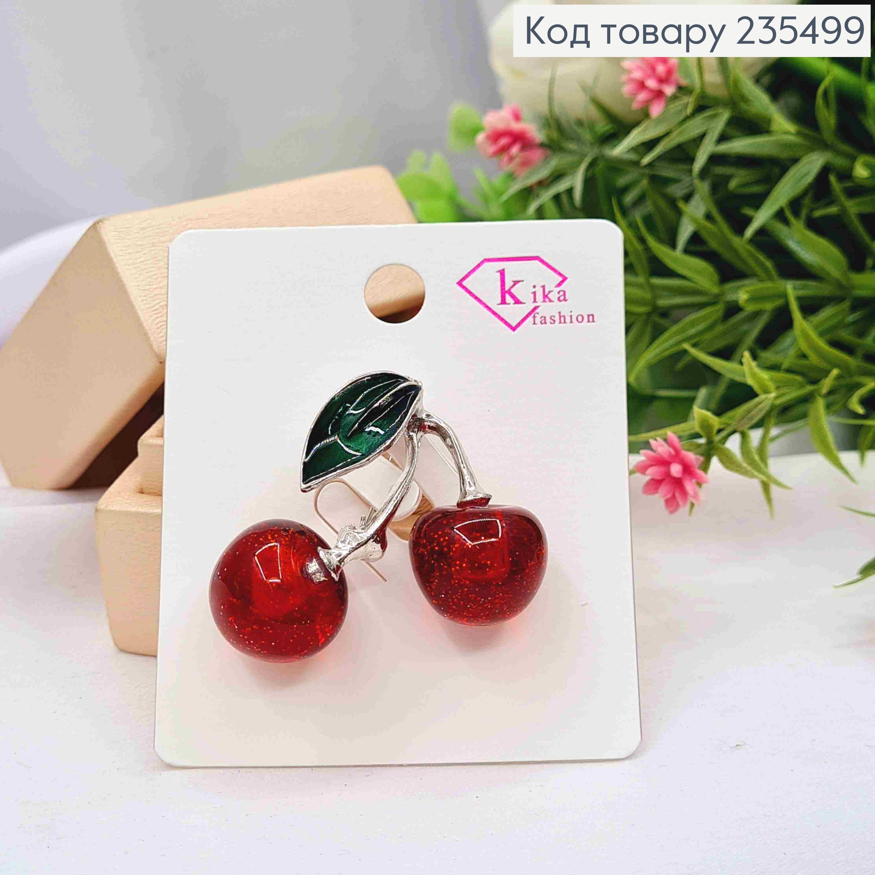 Брошка метал "Вишеньки-Черешеньки" прикрашена камінцями, 4*3см, Срібного кольору 235522 фото