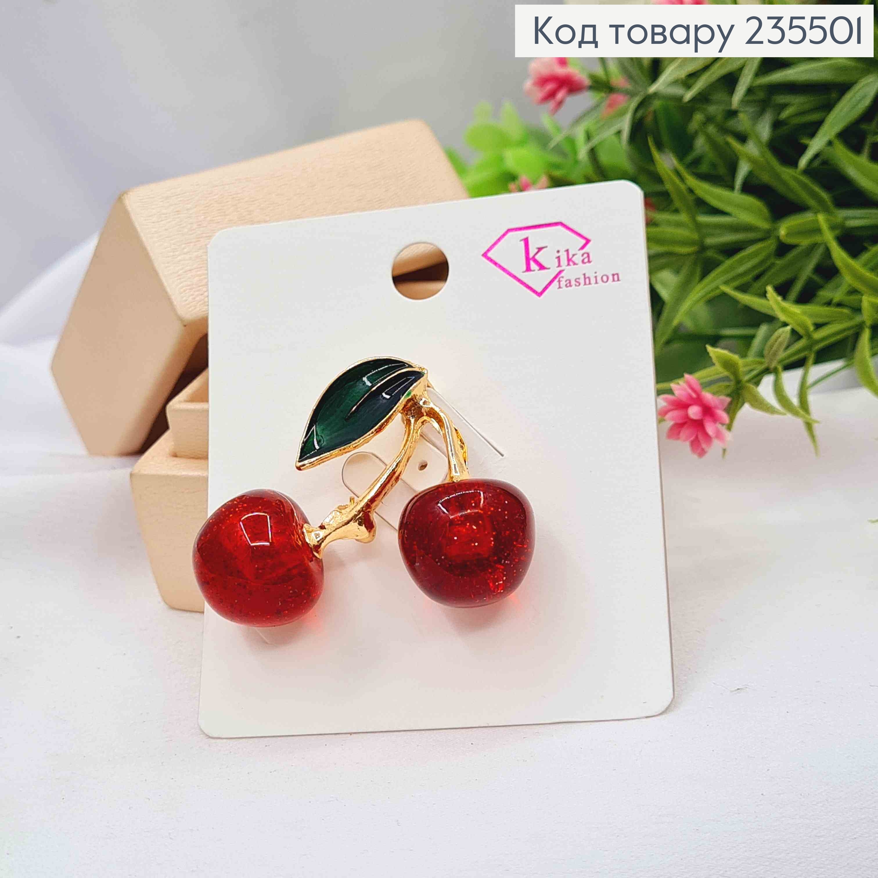 Брошка метал "Вишеньки-Черешеньки" прикрашена камінцями, 4*3см, Срібного кольору 235522 фото