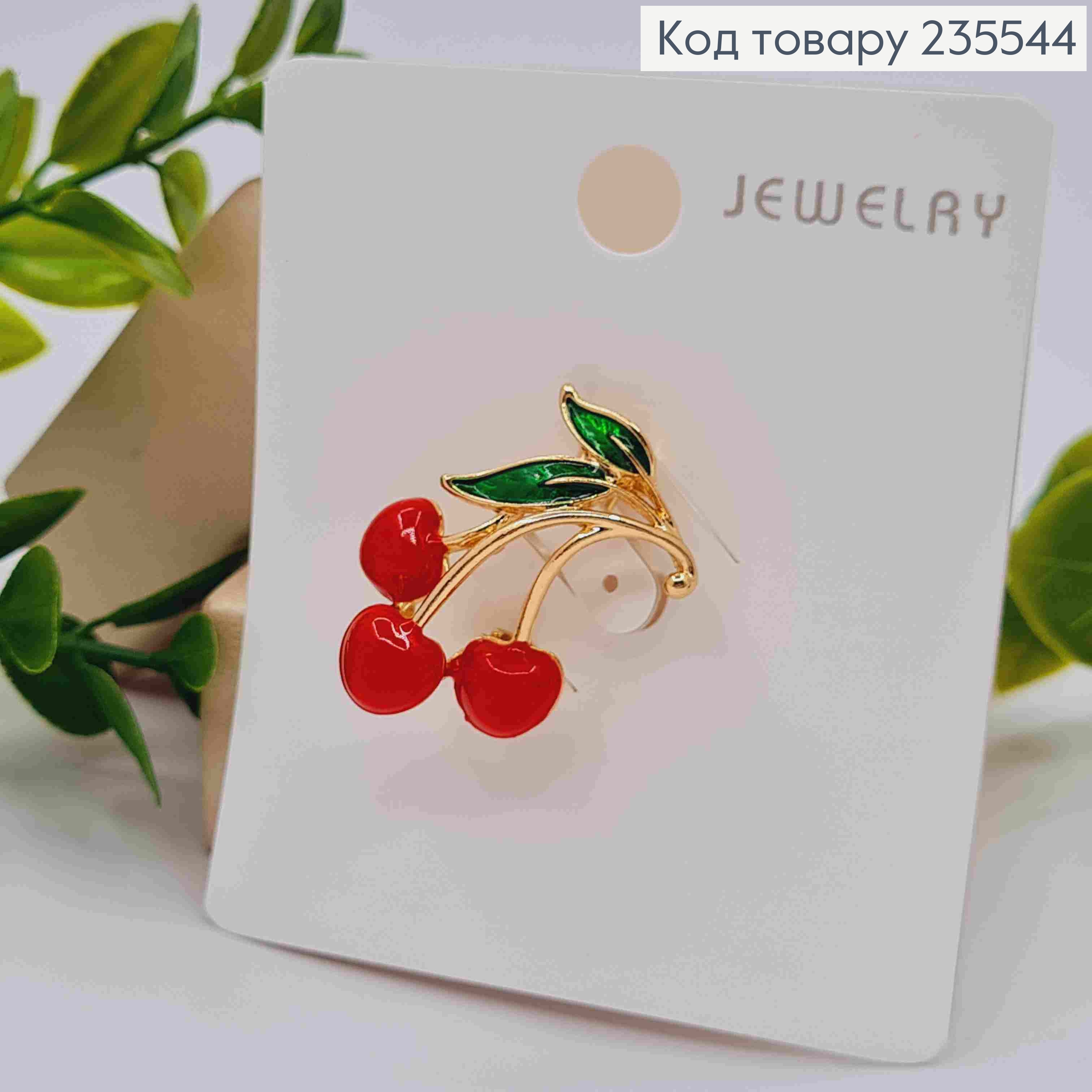Брошка "Вишеньки-Черешеньки", Золотого кольору, 3,1*2см