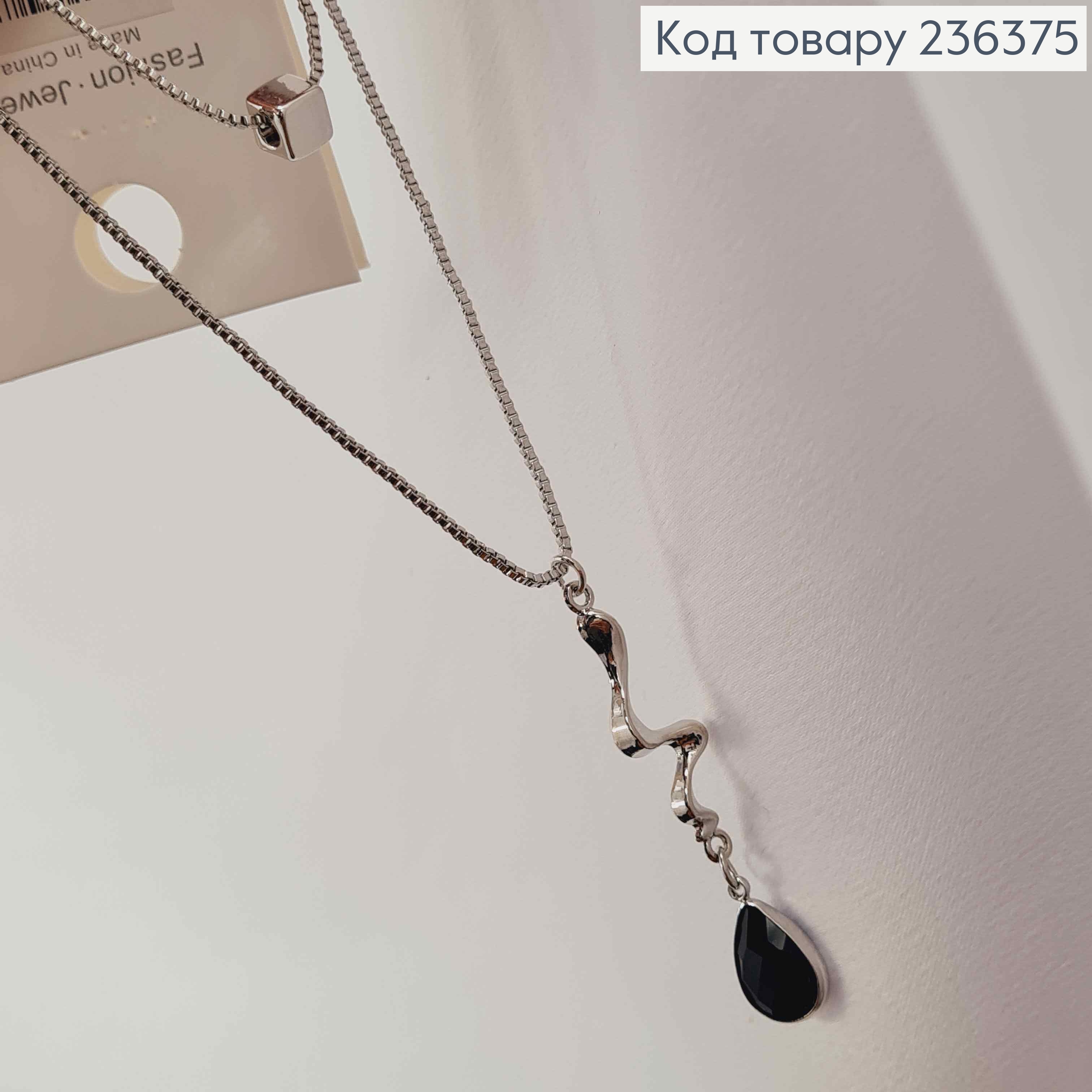 Буси-підвіска подвійні срібного кольору з підвіскою чорним камінцем, 40+5см