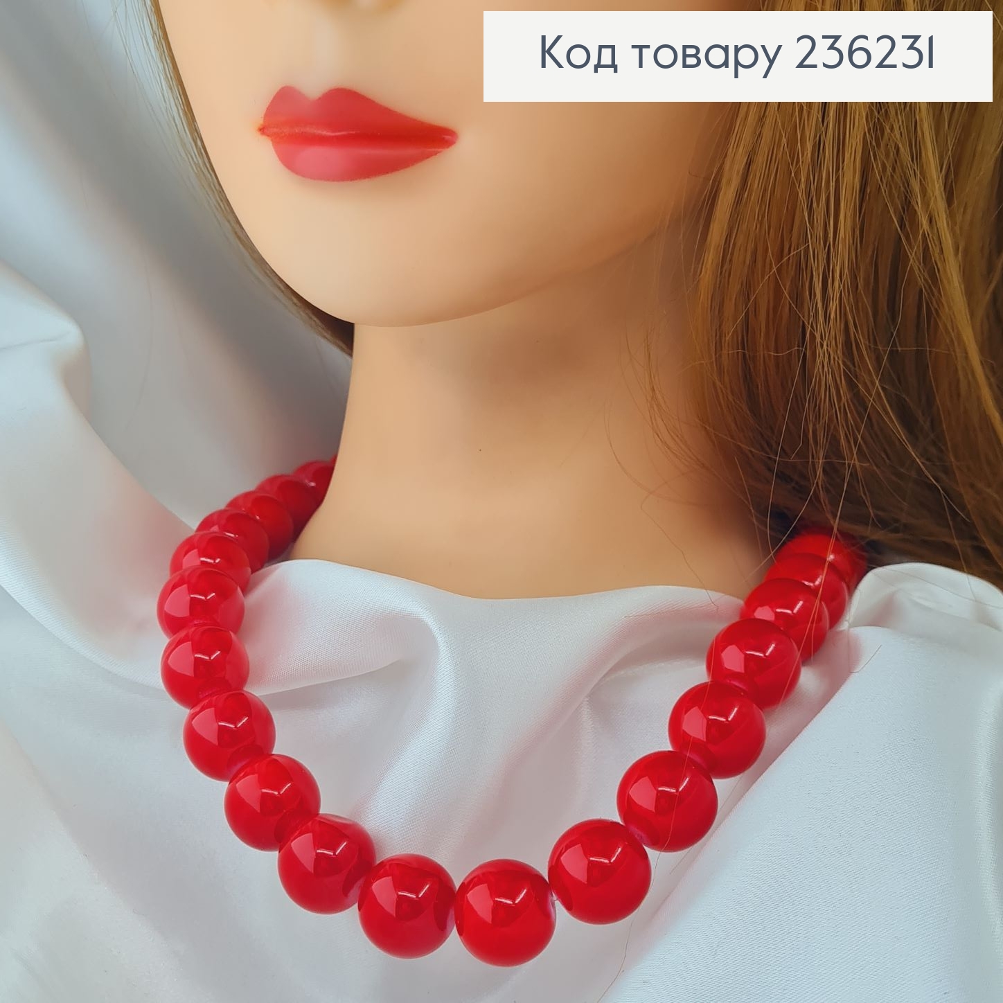 Намисто дерев'яне, ЧЕРВОНОГО кольору з Китичками, 65см, ручна робота 25414 фото