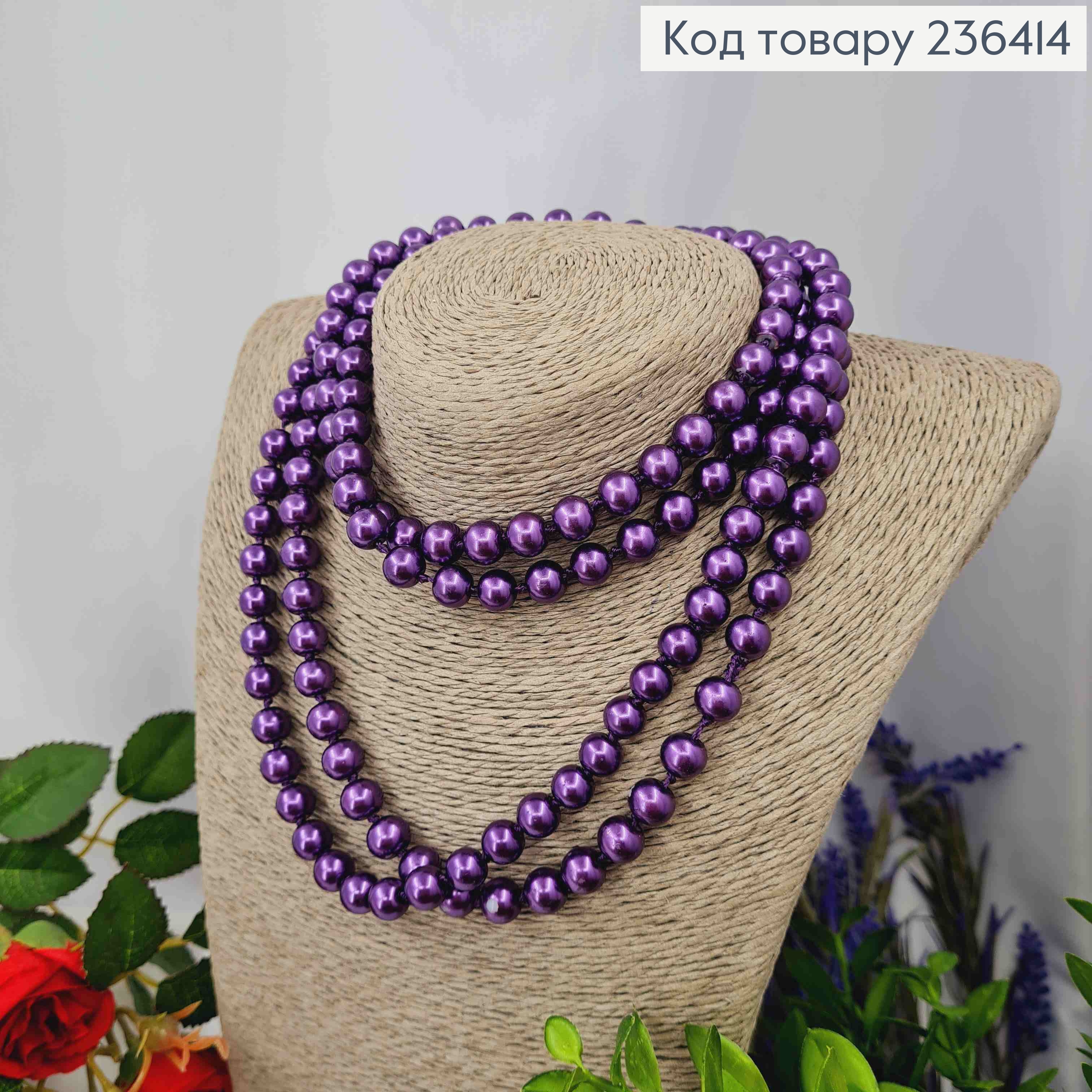 Буси з перлинок Фіолетового кольору 9мм, довжина 152см