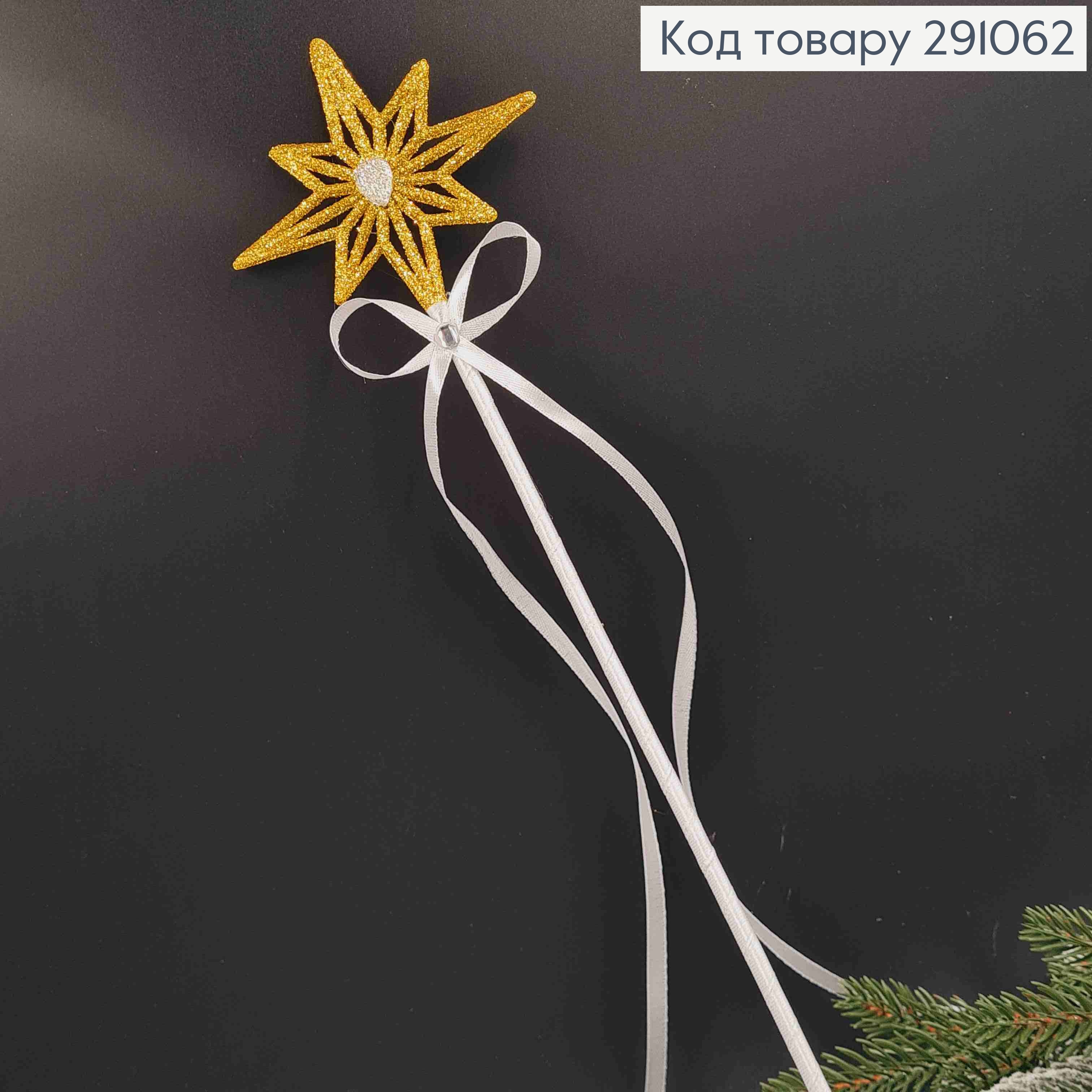 Чарівна паличка, Золота Зірочка з серединкою в камінцях, обтягнута ленточкою, довж, 44см