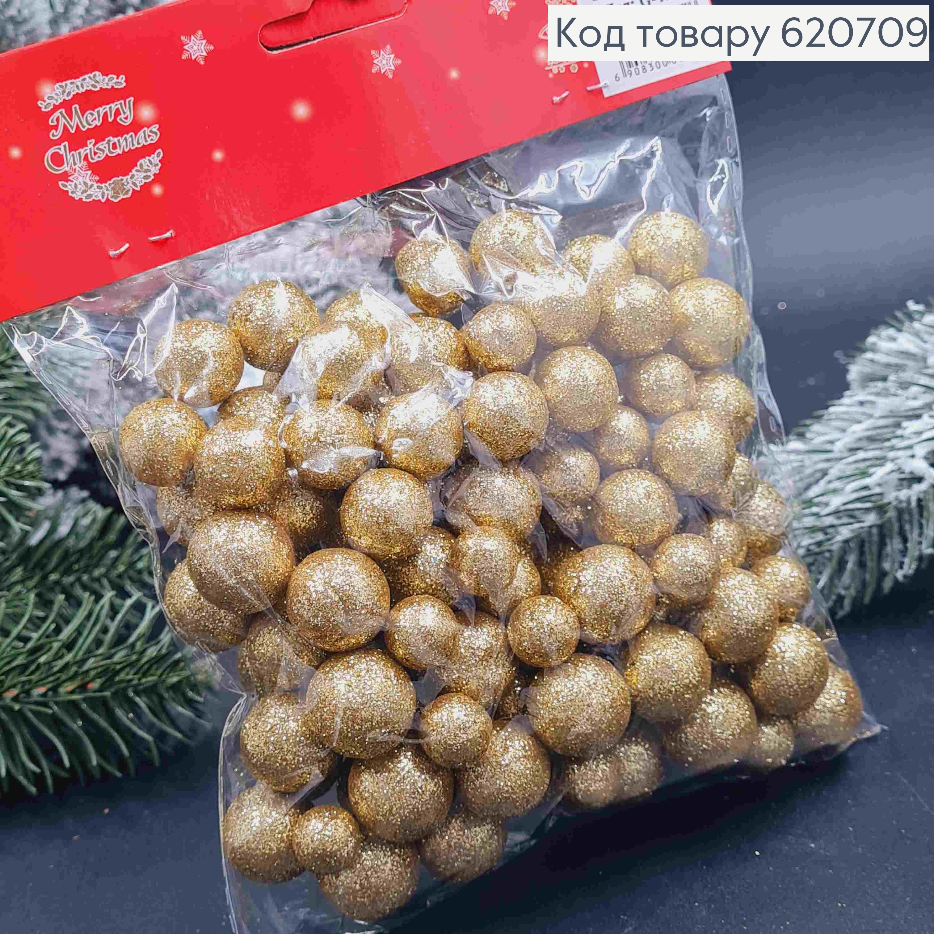 Декор Новорічний, ЗОЛОТІ кульки різного розміру, від 1,2см до 2см, */-110шт/уп, 30гр 620709 фото