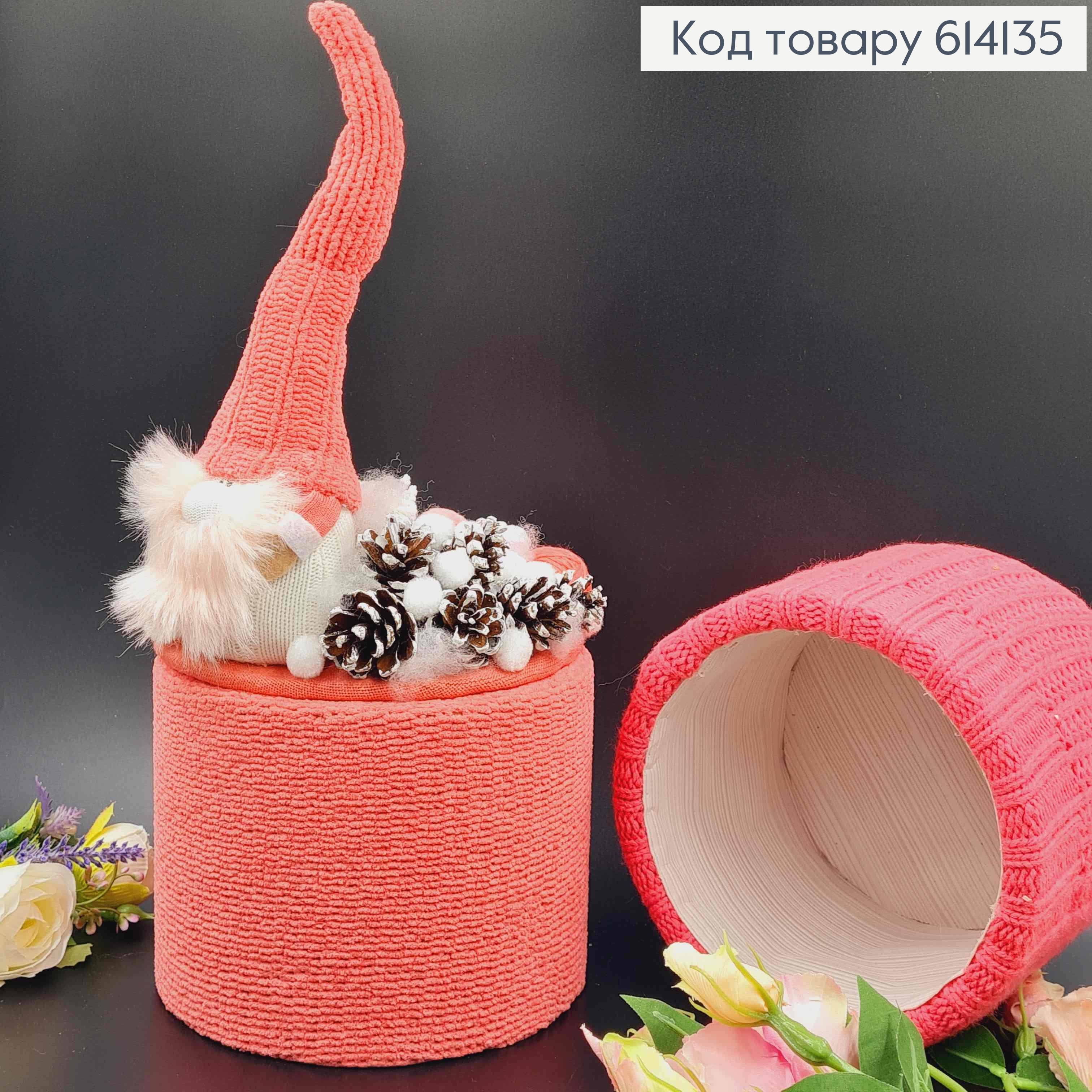 Дерев"яна коробка17*17см ОРАНЖ, з декоративною кришкою з гномиком 20см, ручна робота, УКраїна